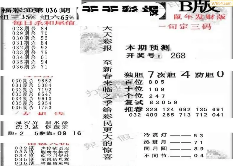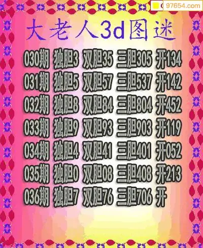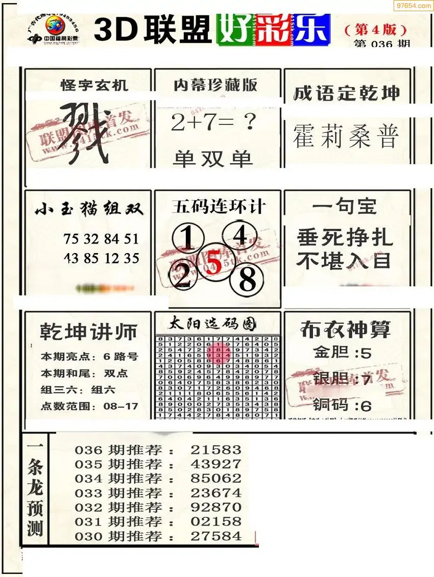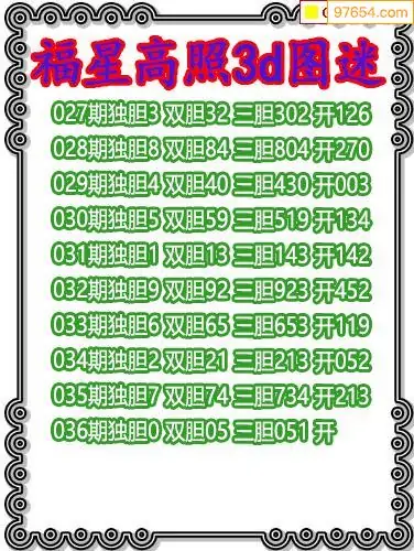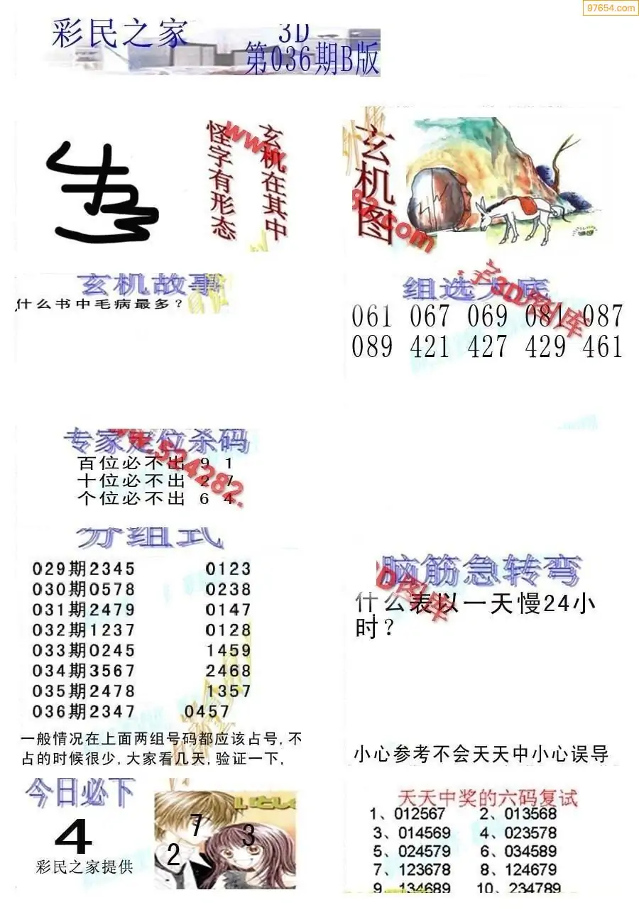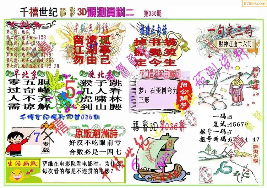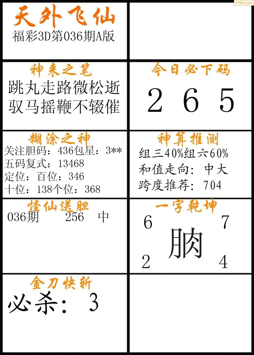 (3)2026036期3D预测总汇全图_福彩3d图谜字谜总汇