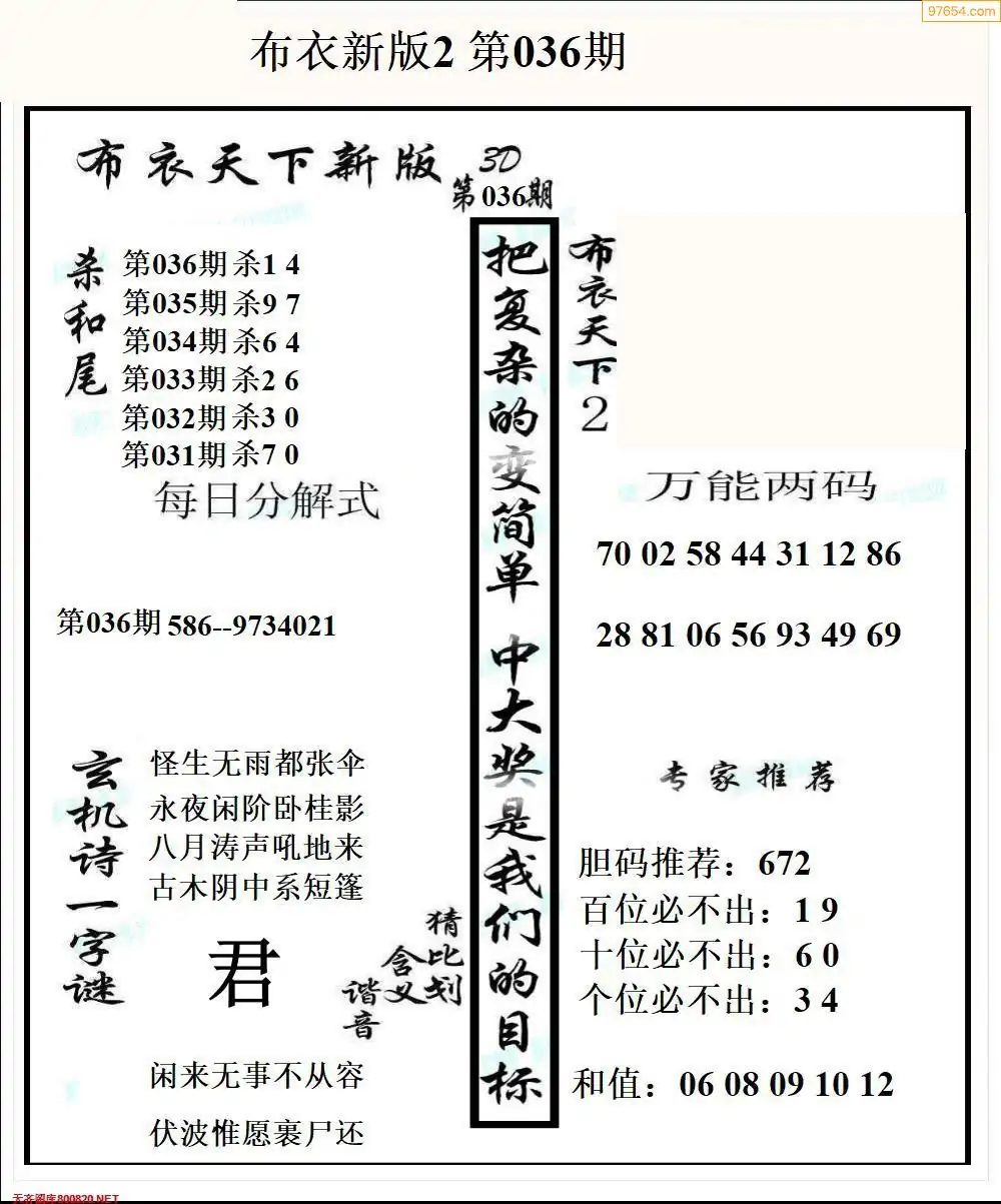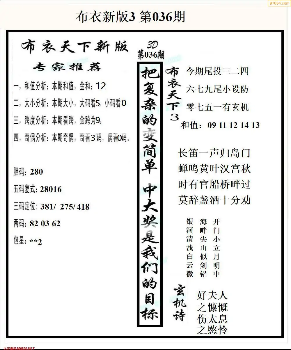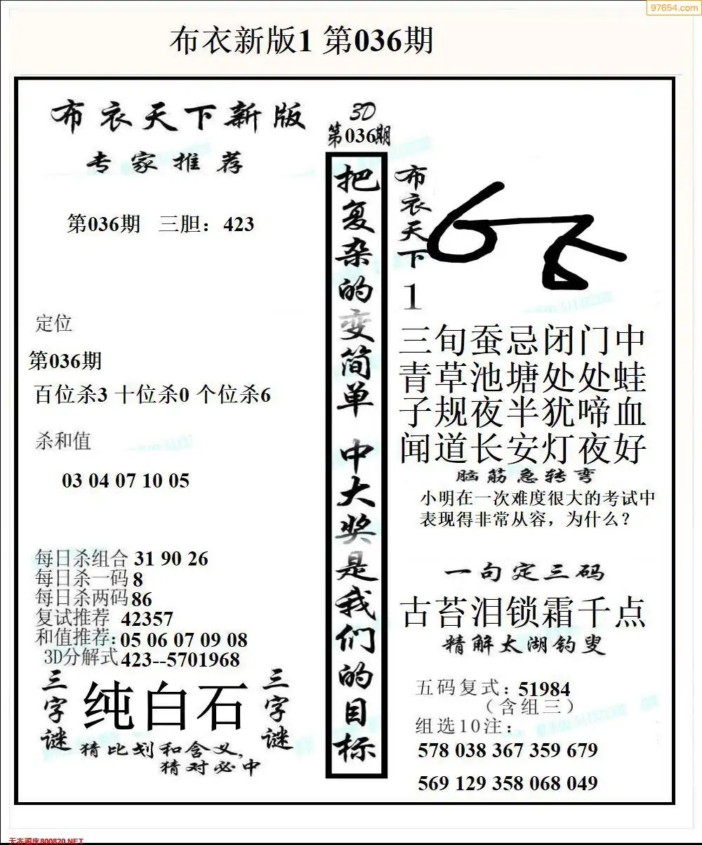 (2)26年036期本期3d图迷汇总_福彩3D图谜总汇图