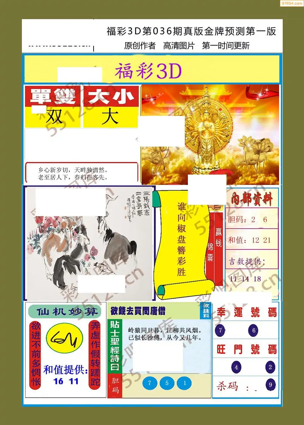 (8)26年036期今日3d各类彩报汇总