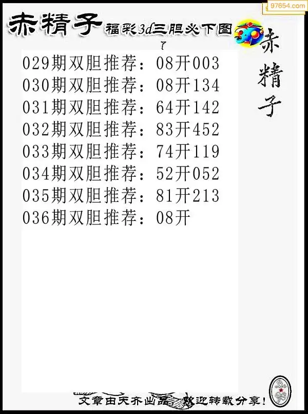(8)26年035期今日3d各类彩报汇总
