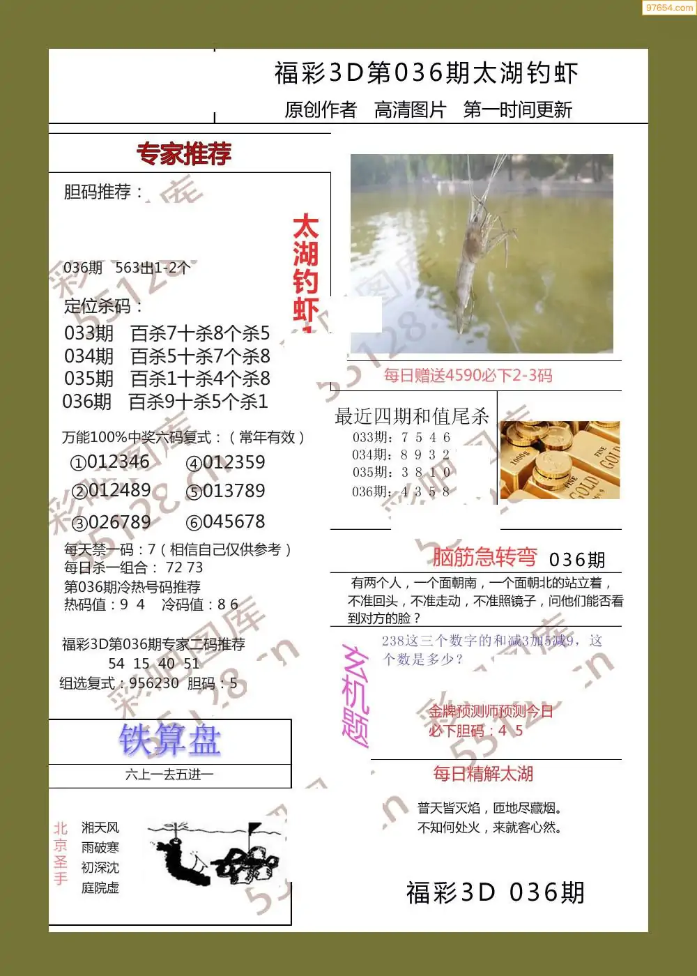 (3)2026036期3D预测总汇全图_福彩3d图谜字谜总汇