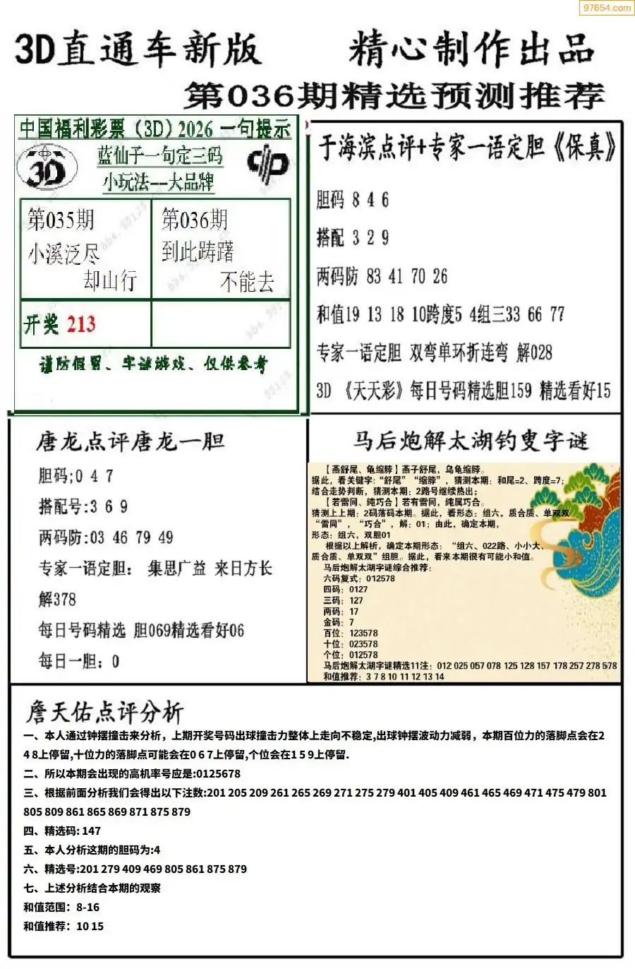 26年036期3D各板块资料整合汇总