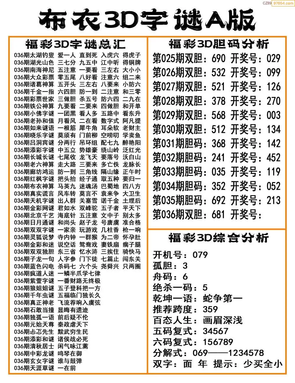 福彩26036期布衣3d字谜ab