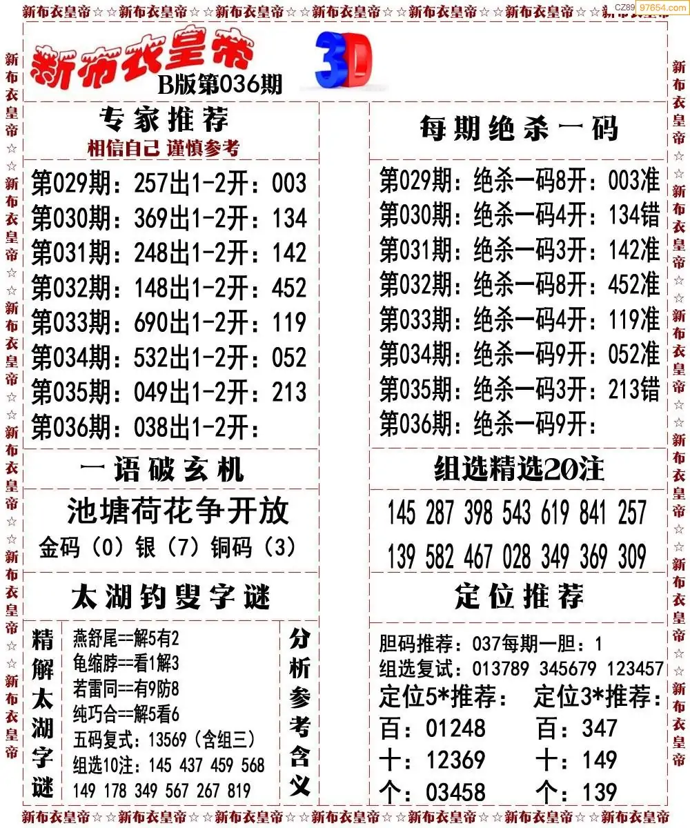 26036期3d新布衣皇帝早间四版