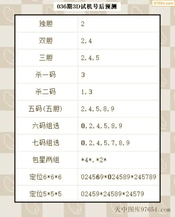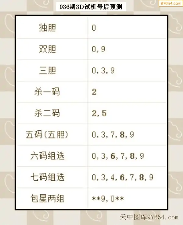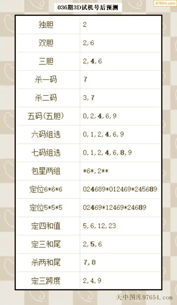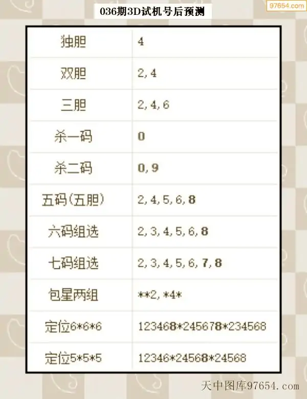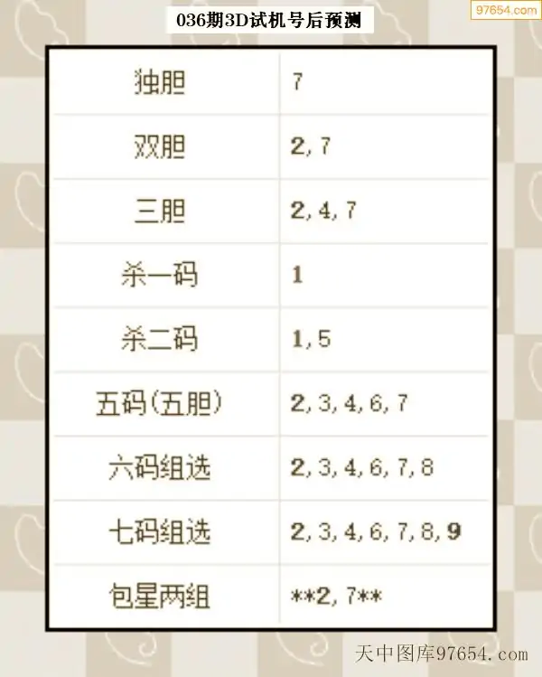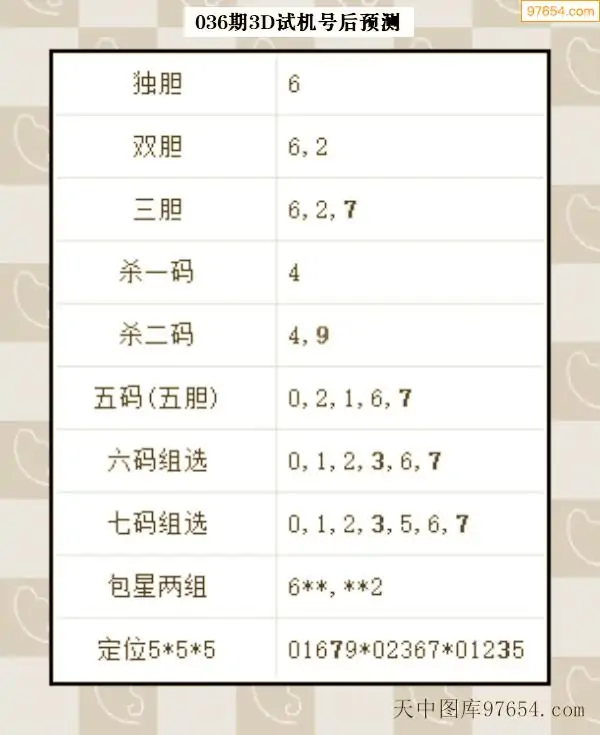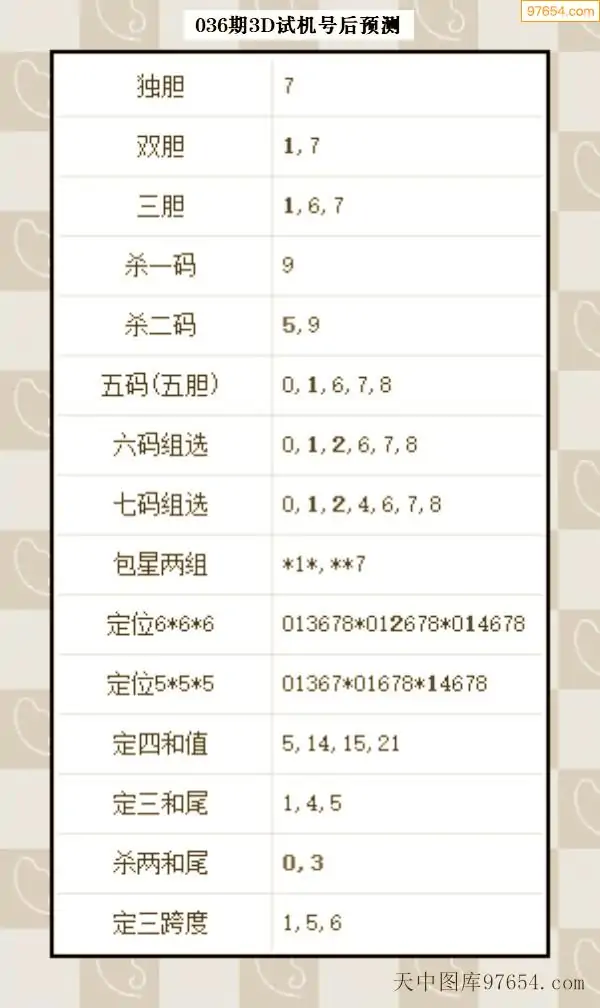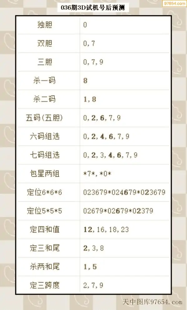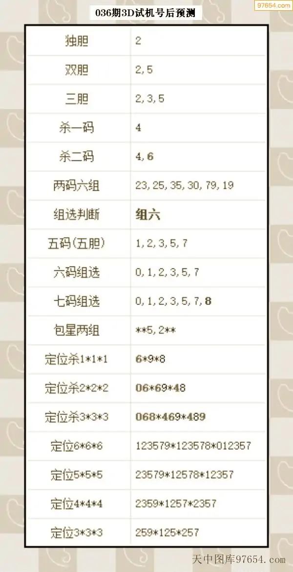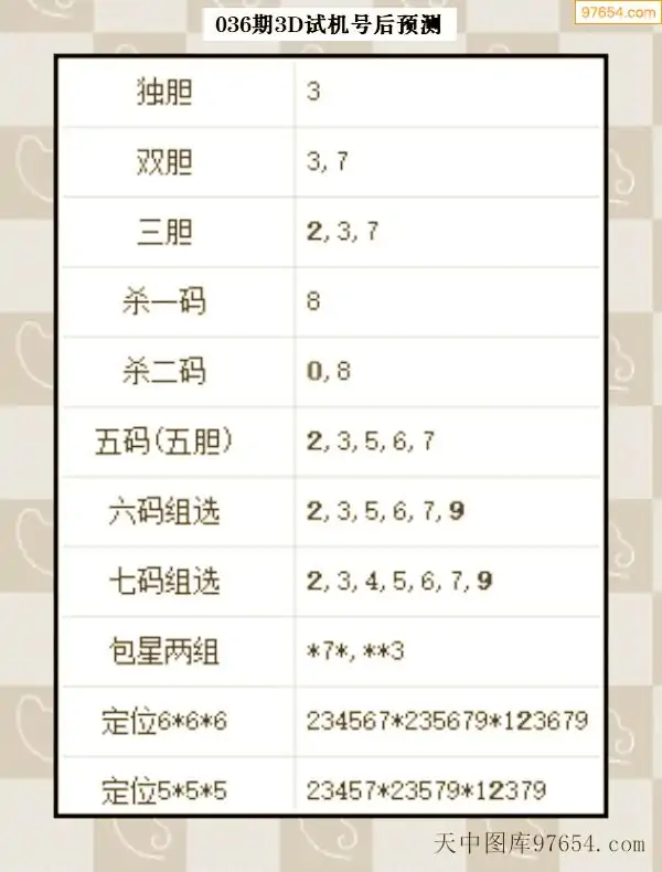 26年035期天中图库专家3D试机号后分析汇总
