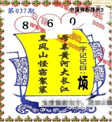 26年天吉体彩P3玄机怪字037期图迷