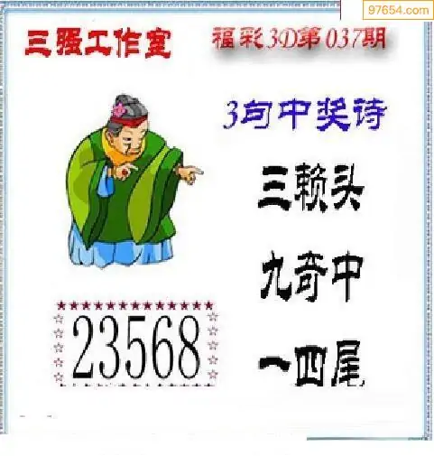 福彩3D26037期蓝仙子一句定三码图谜