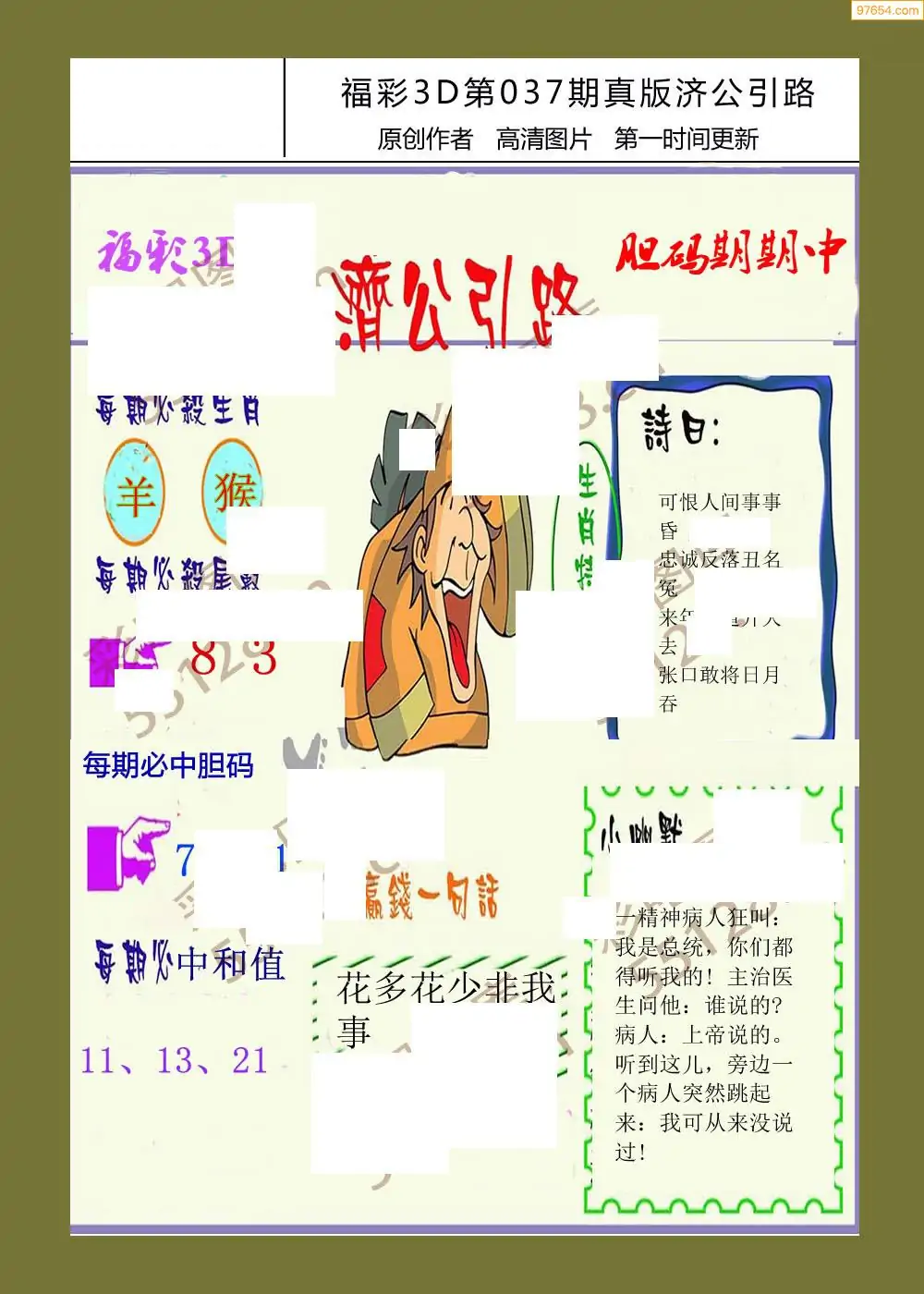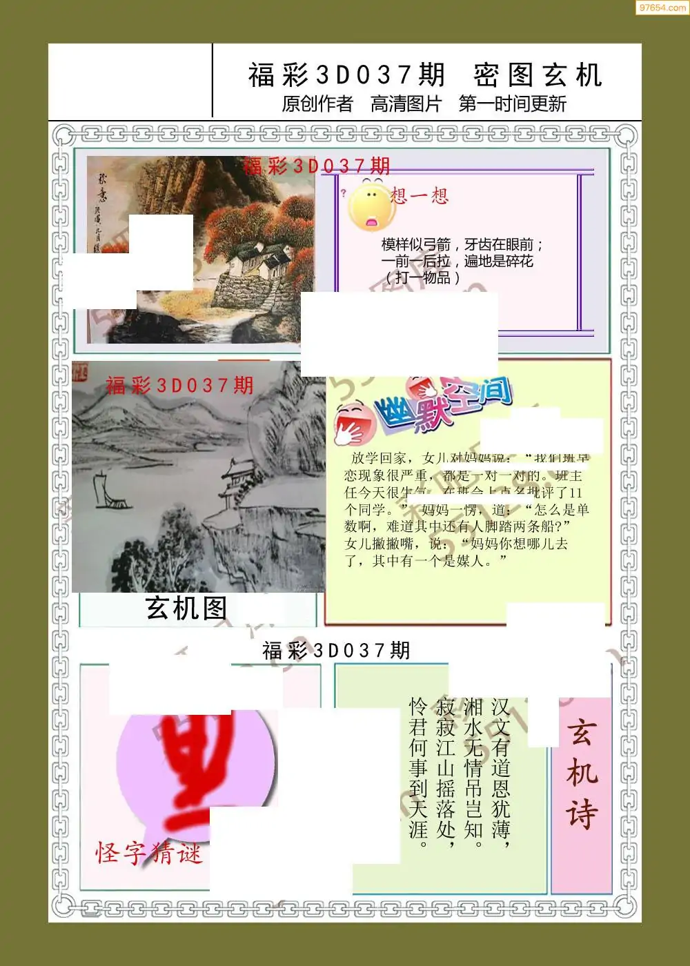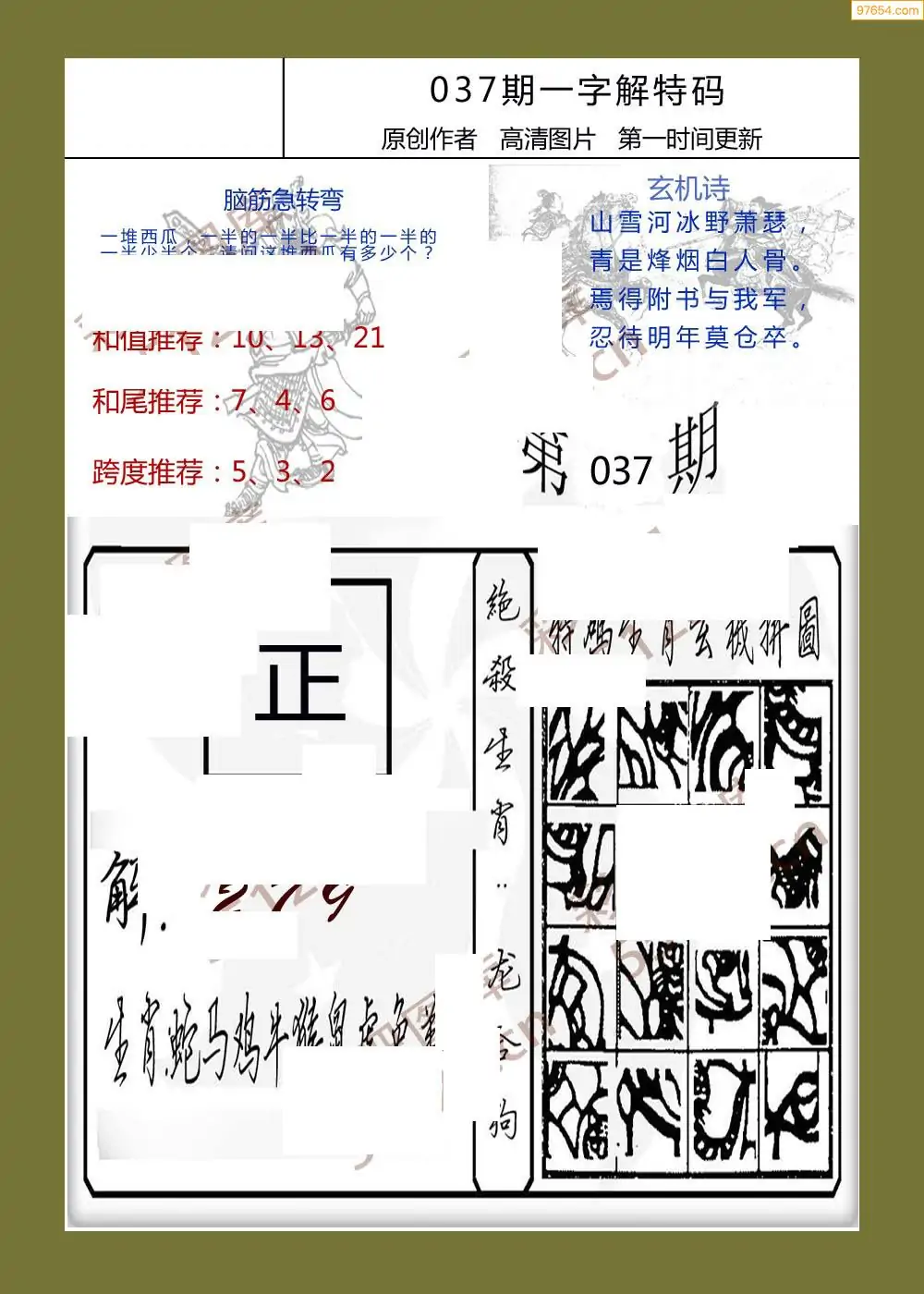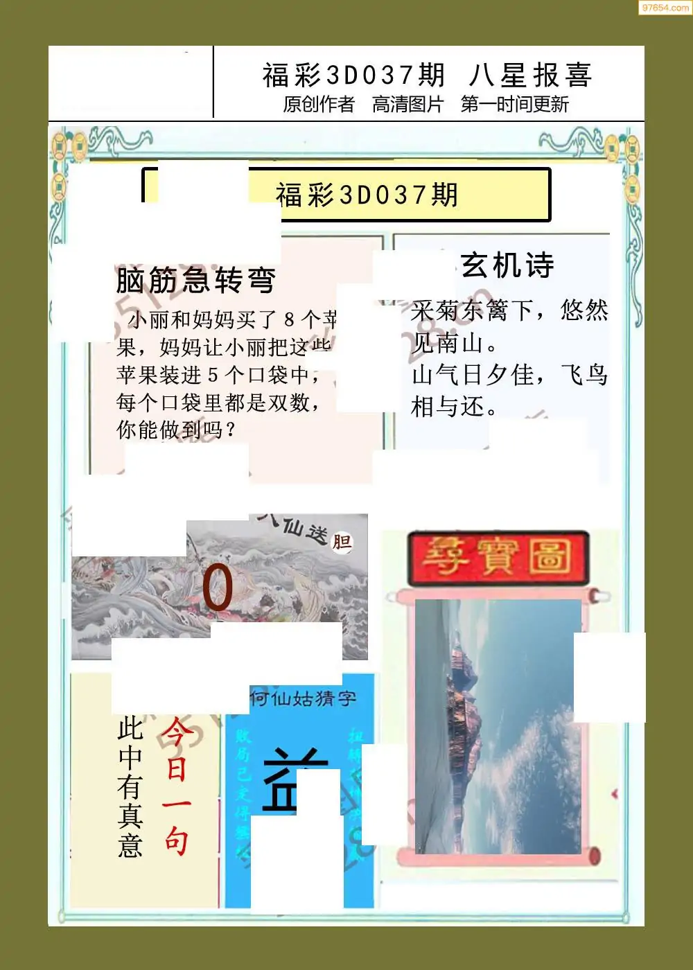 037期福彩天机壁怪字图