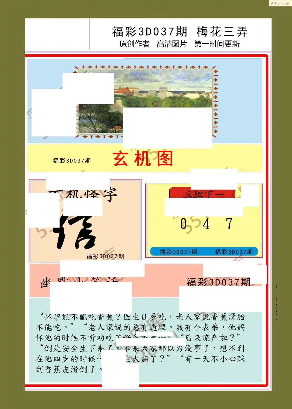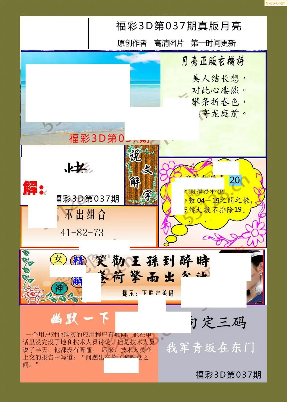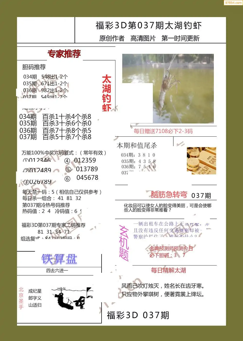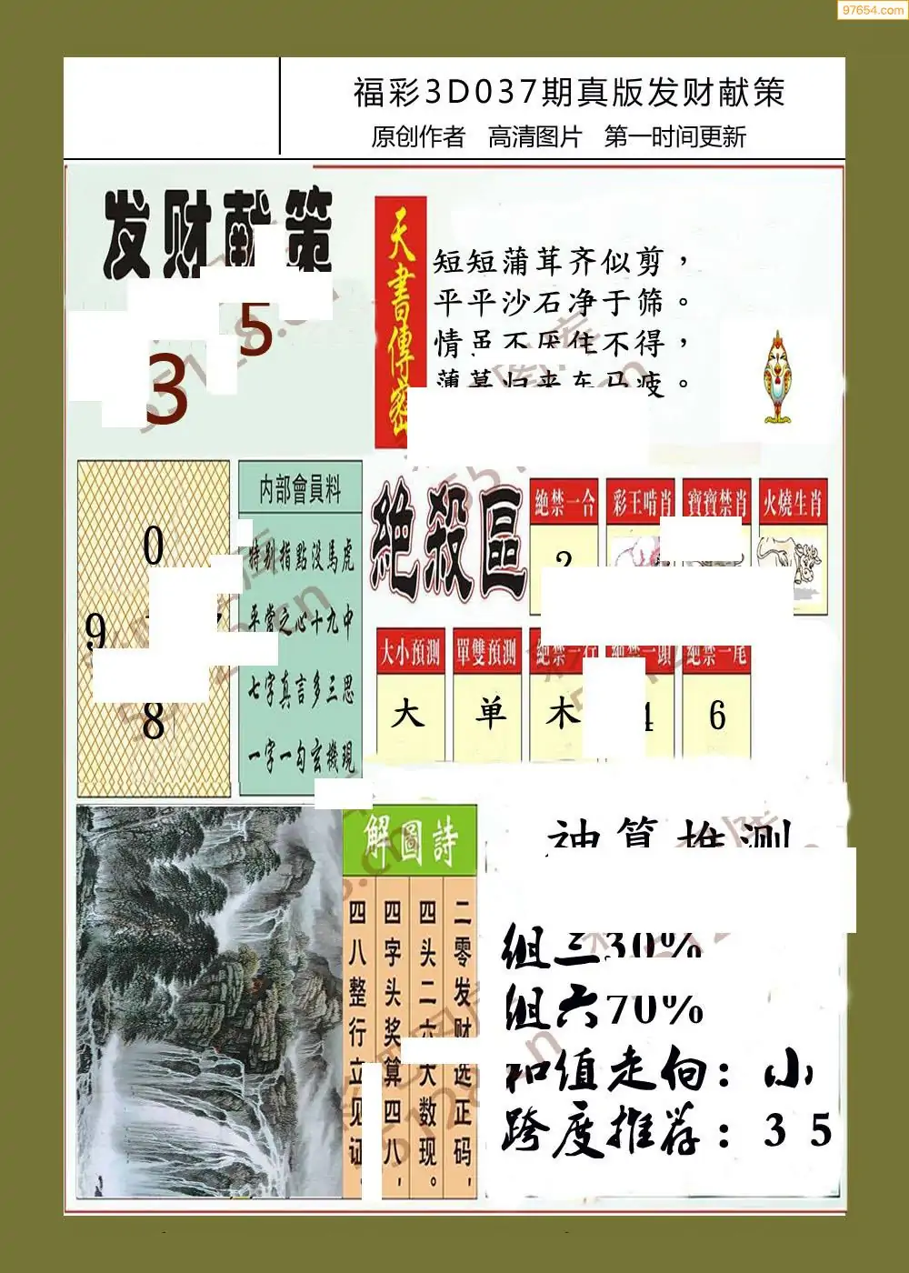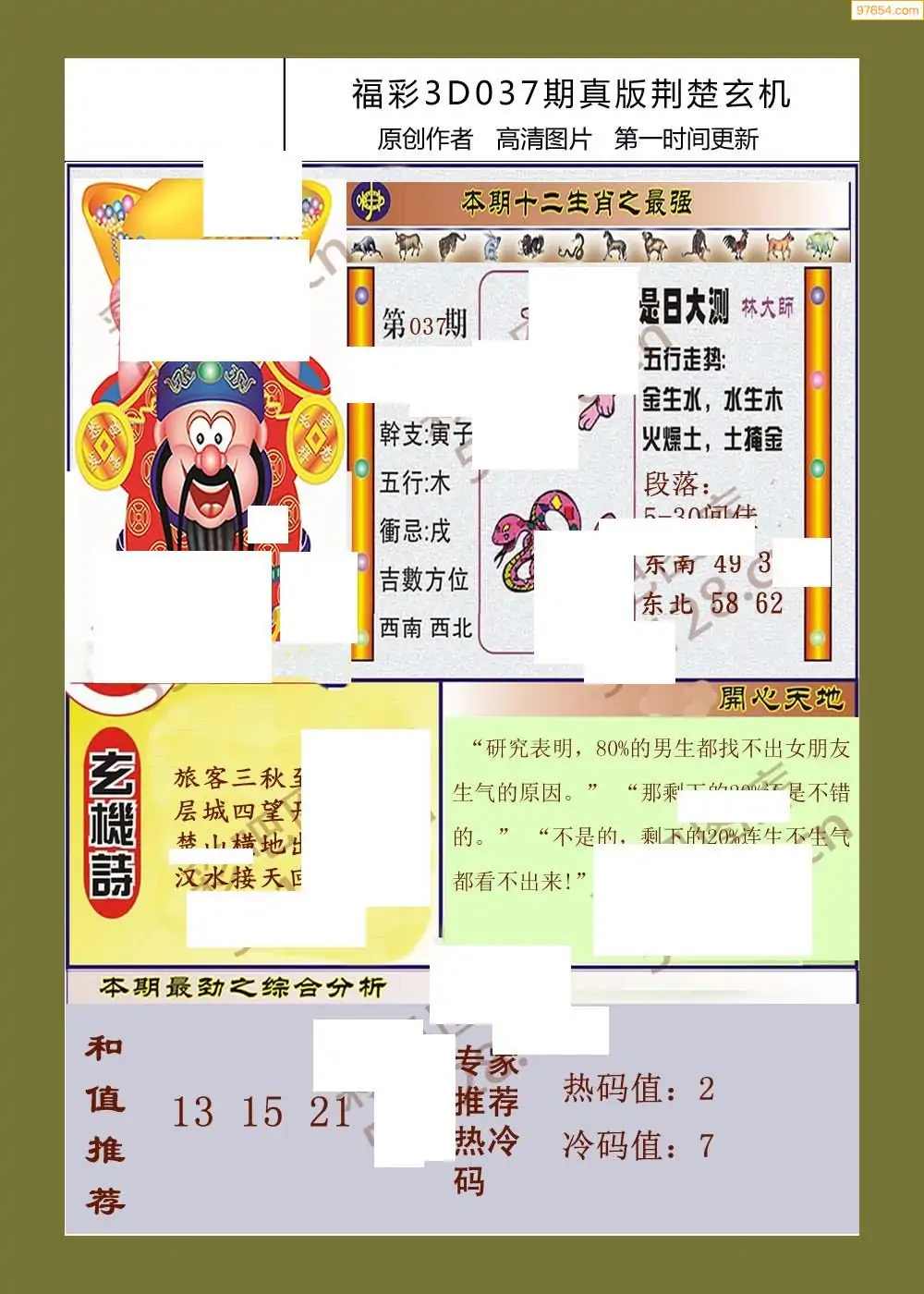 福彩3D037期天牛彩吧套图整合总汇