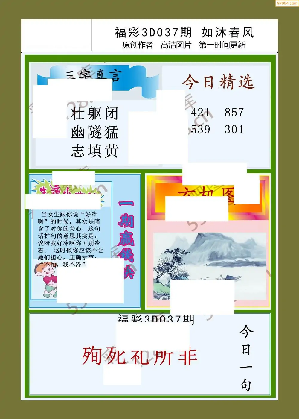 福彩3D26037期蓝仙子一句定三码图谜