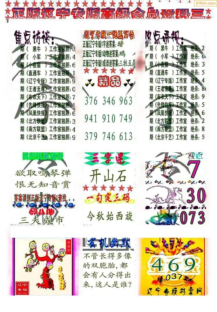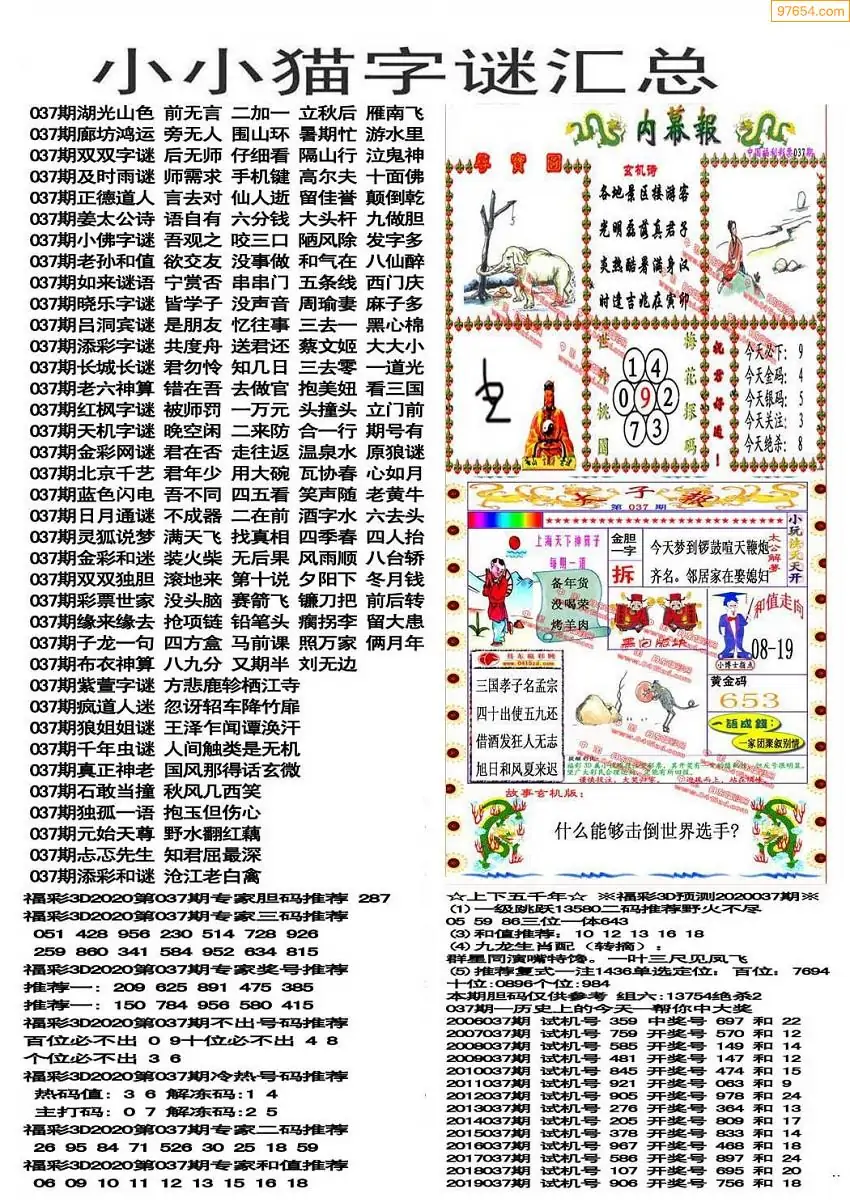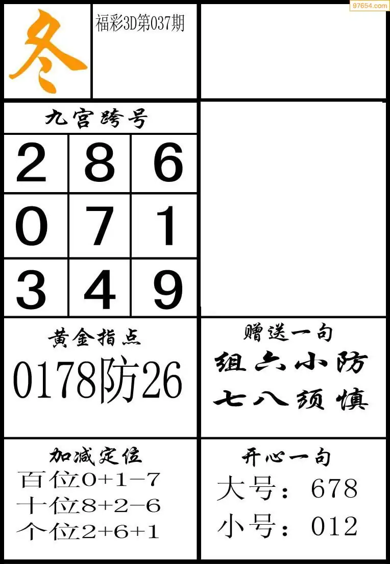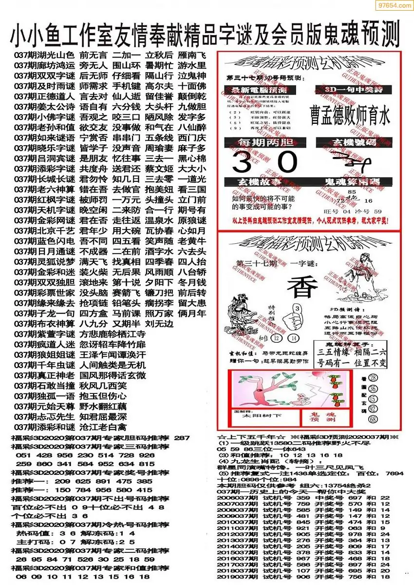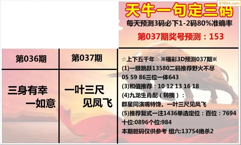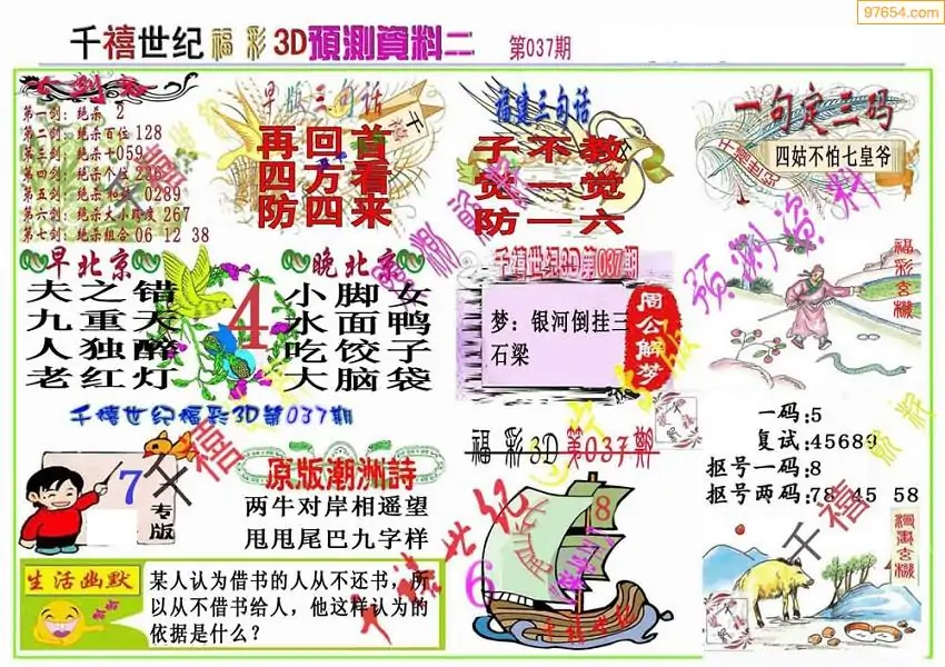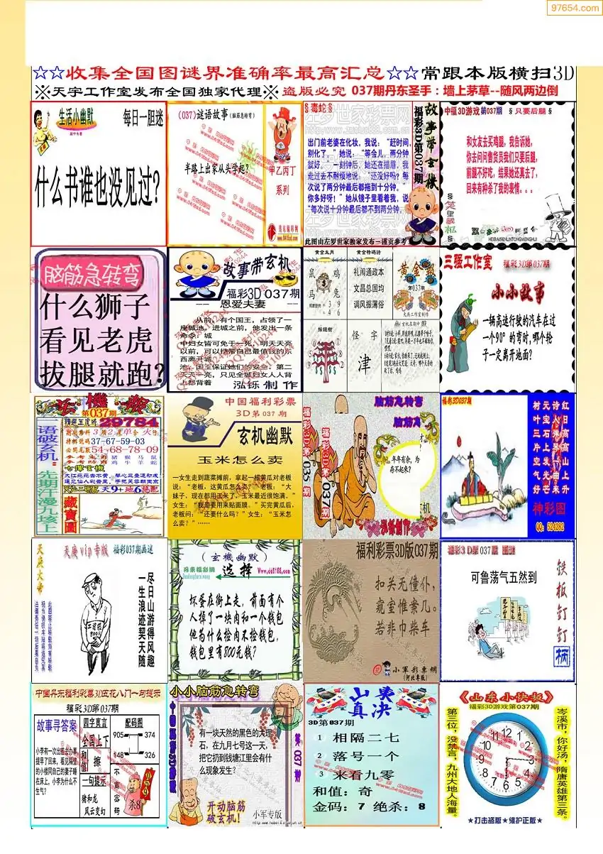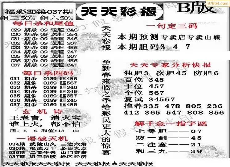 福彩3D037期天牛彩吧套图整合总汇