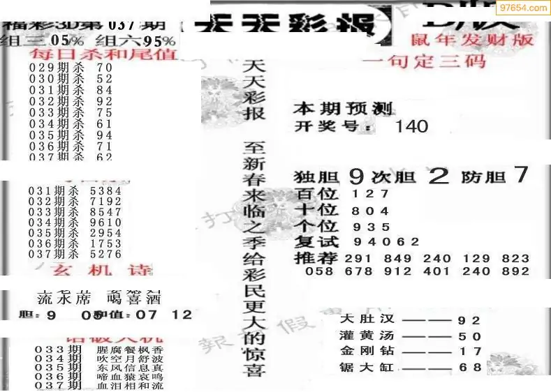 037期财神一句定码3D图库