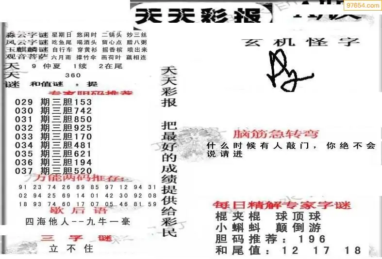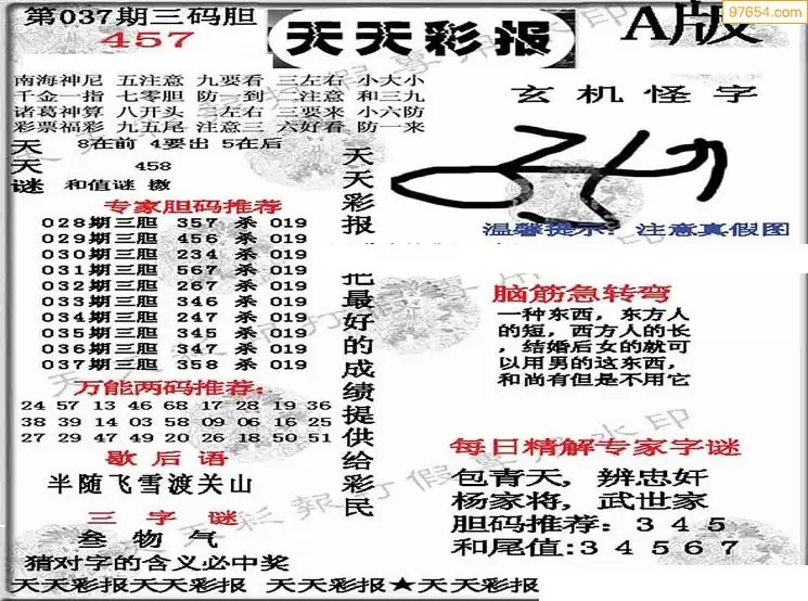 037期福彩天机壁怪字图