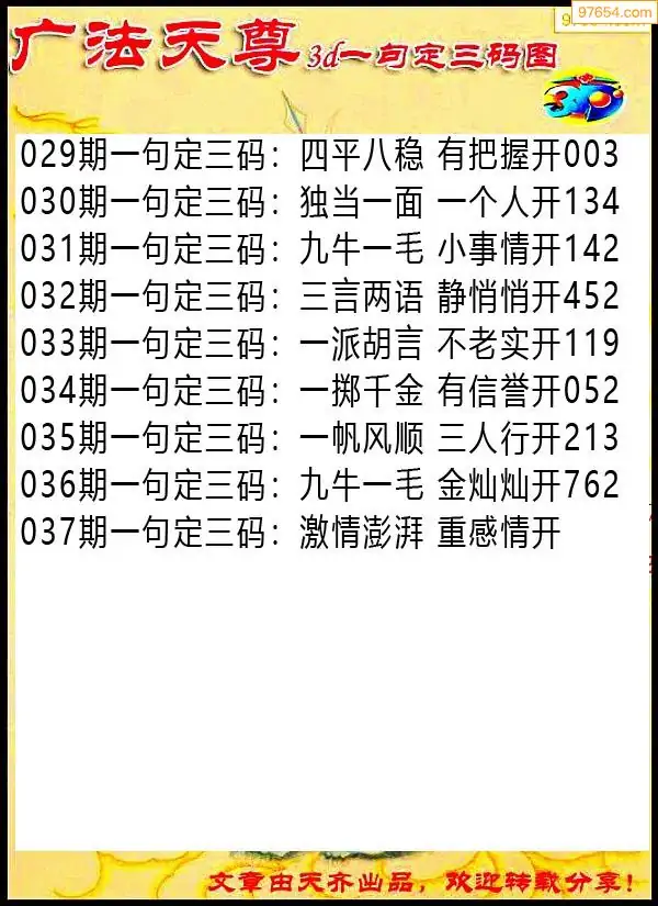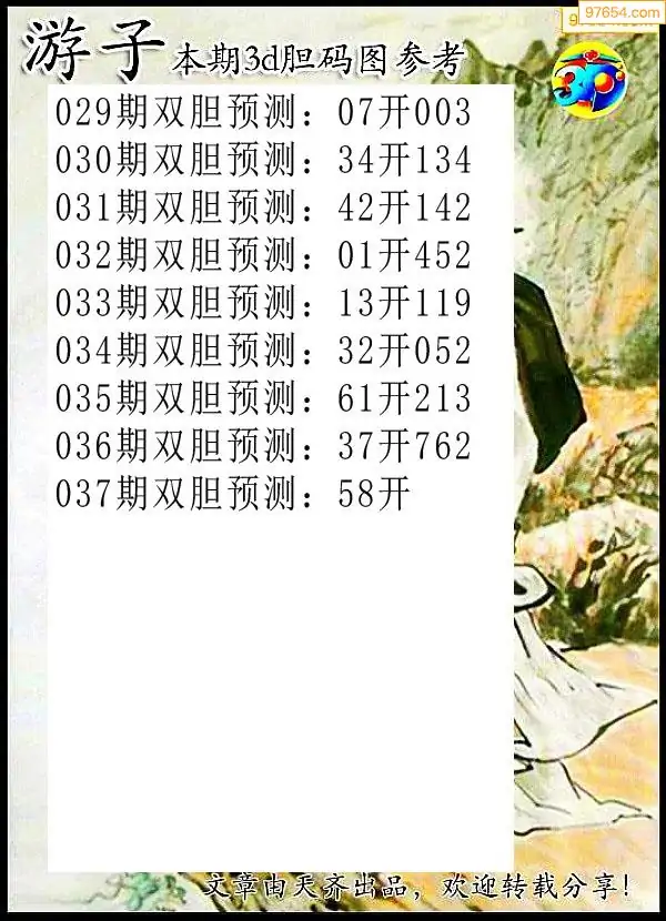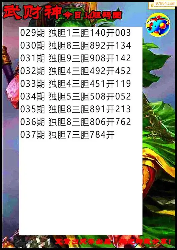 037期97654本站收集胆码出号预测