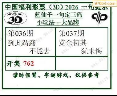 福彩3D26037期蓝仙子一句定三码图谜