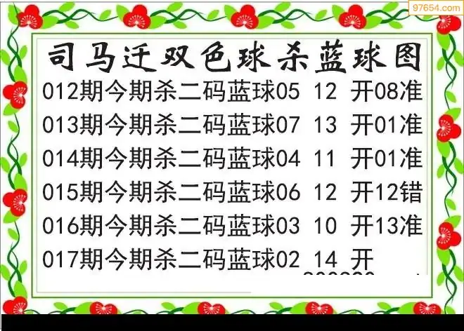 26年双色球017期司马迁杀二蓝破解图谜