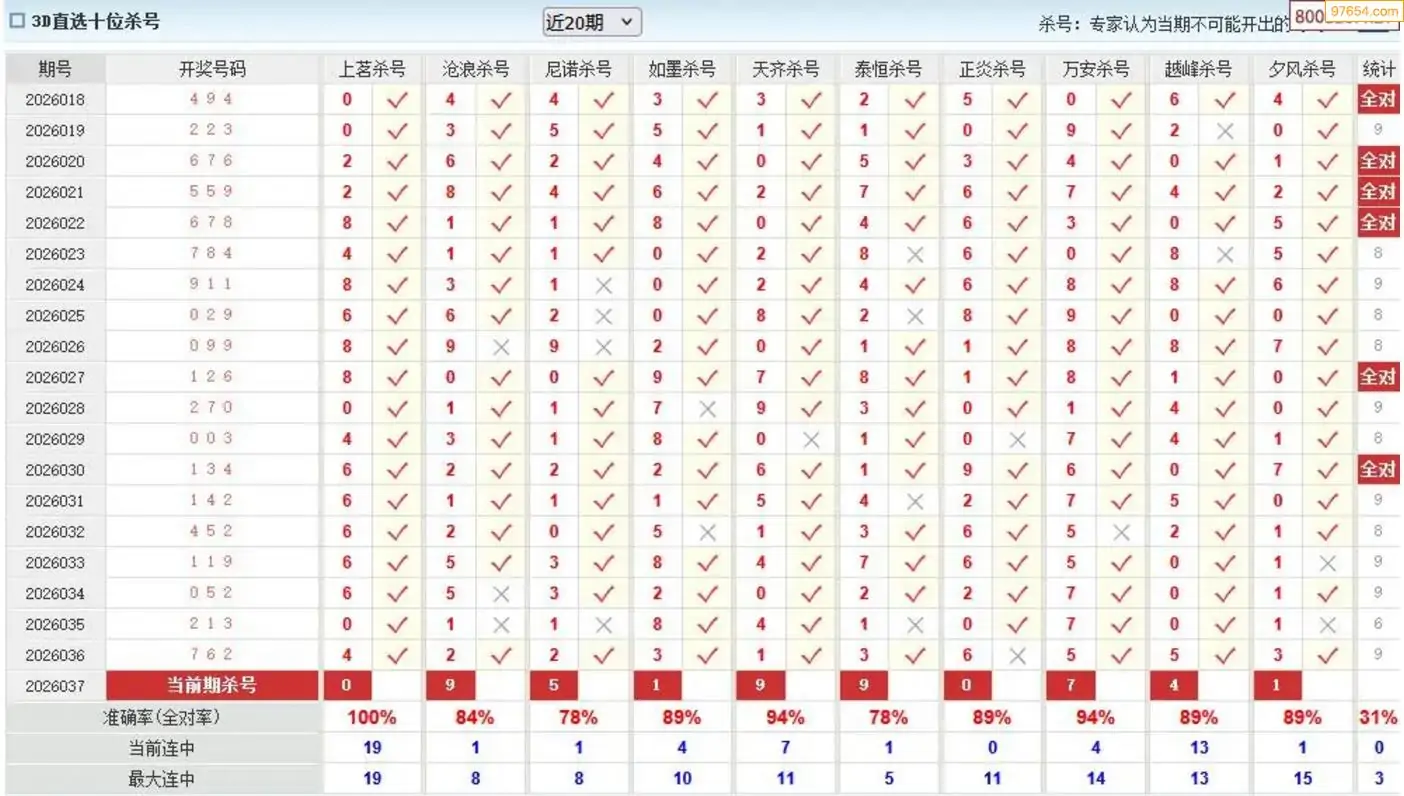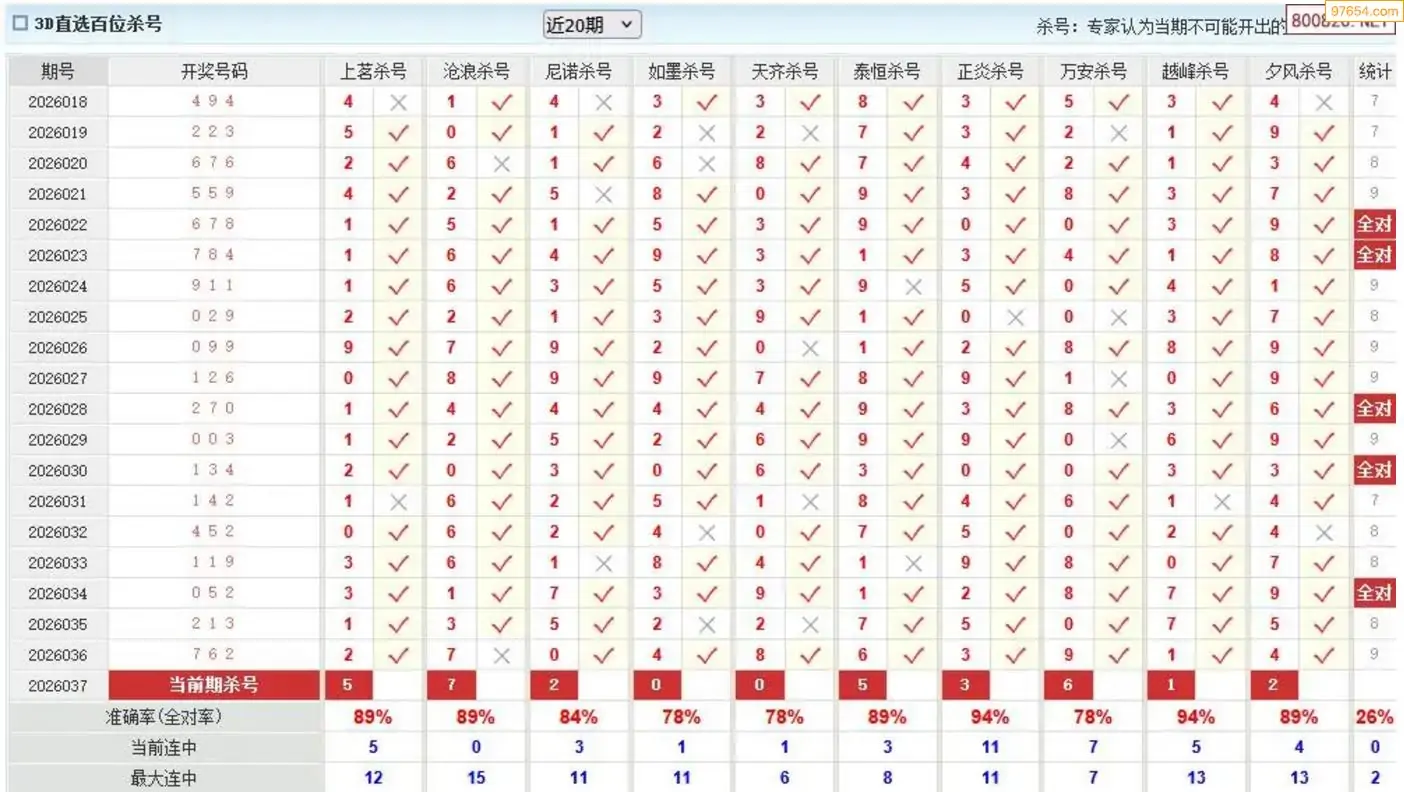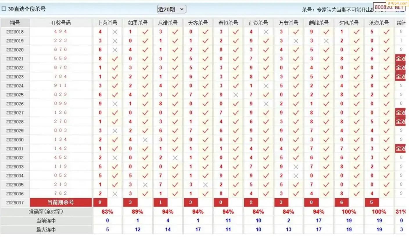 胡八一3d26年037期杀号一胆 13连中