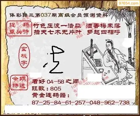 26年天吉体彩P3玄机怪字037期图迷