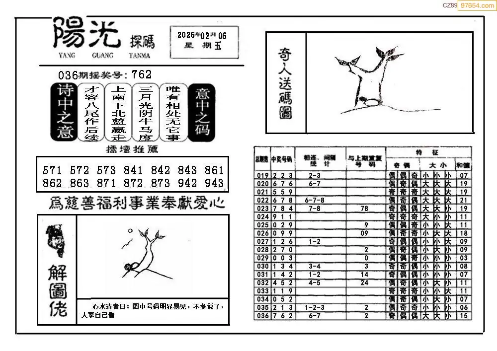 26037期福彩3D阳光探码图