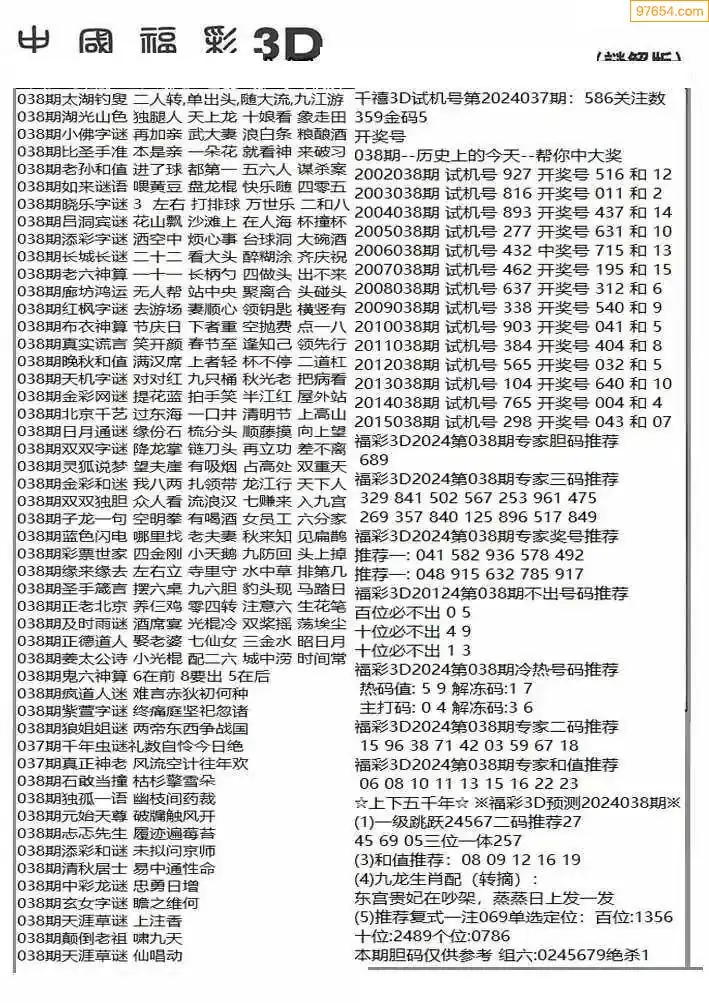 26年038期3D各板块资料整合汇总