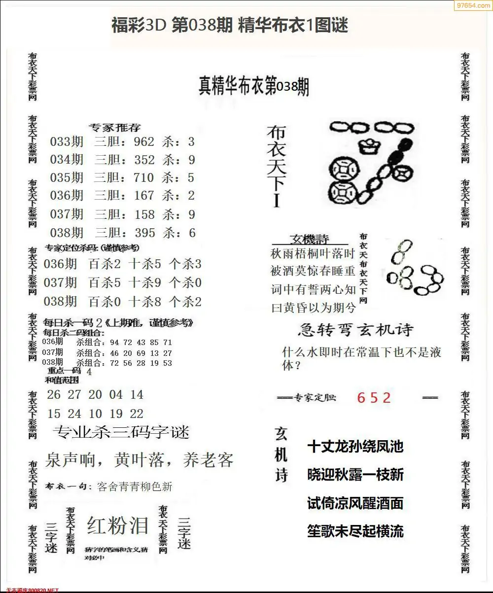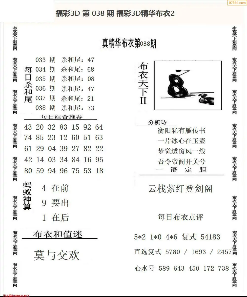 福彩038期3d真精华布衣+布衣早报(转载)