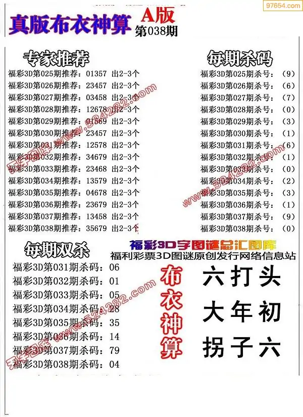 (8)26年037期今日3d各类彩报汇总