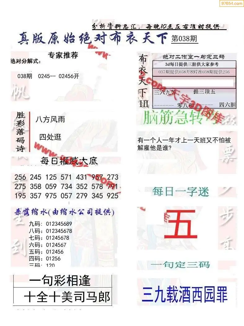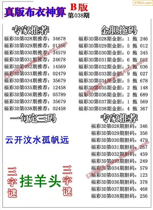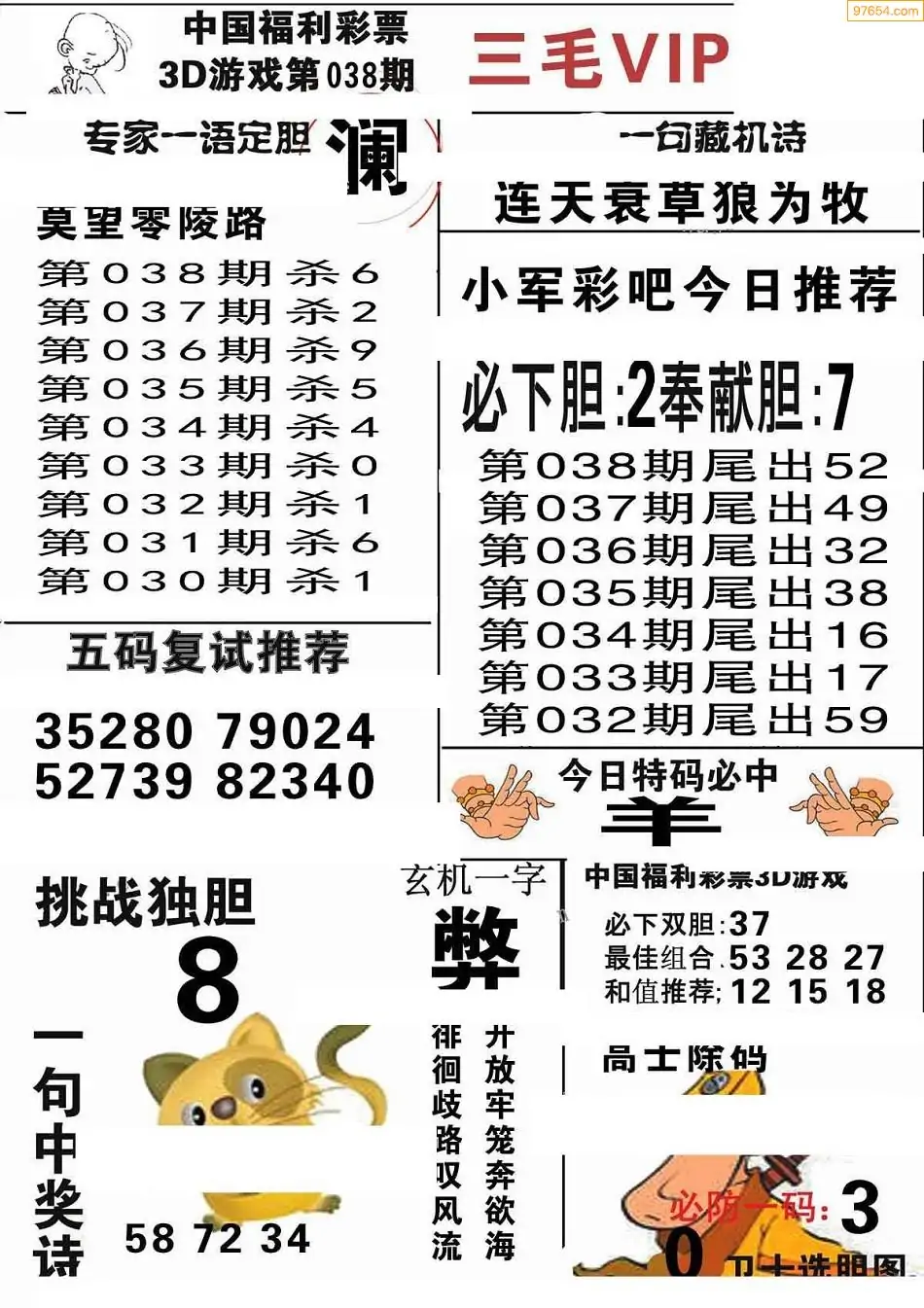 (3)2026038期3D预测总汇全图_福彩3d图谜字谜总汇