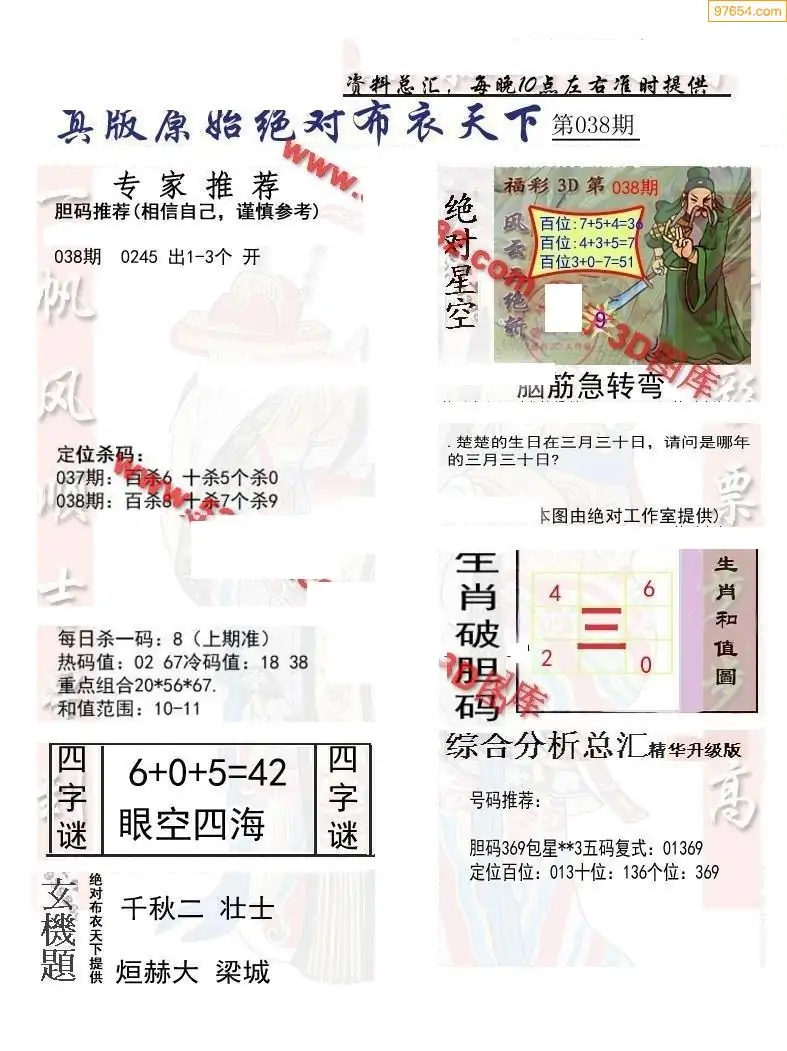 (2)26年038期本期3d图迷汇总_福彩3D图谜总汇图