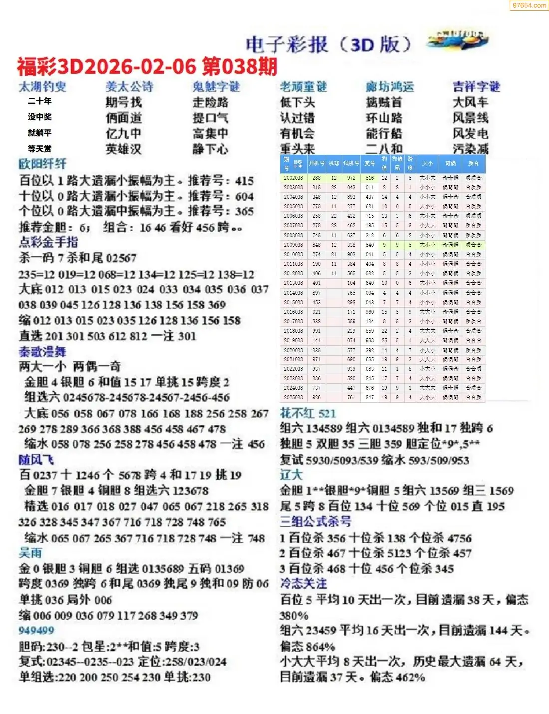 26年038期3D各板块资料整合汇总