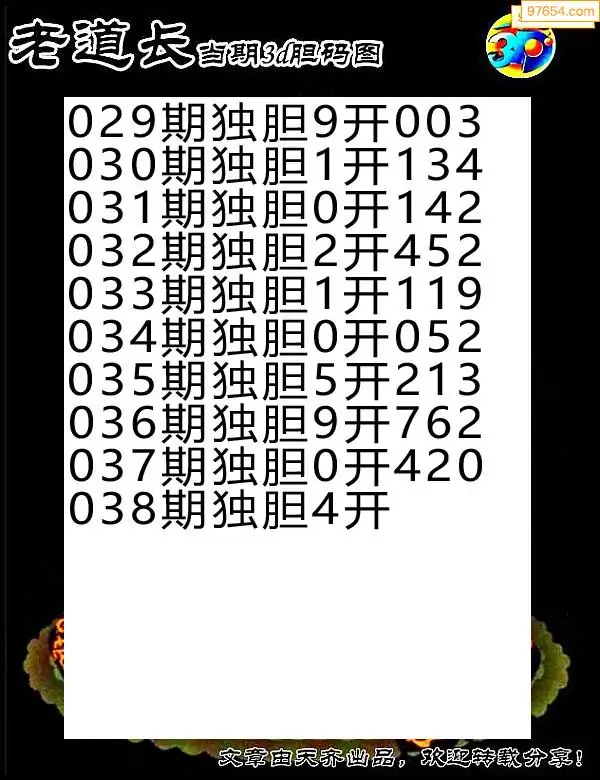 2026038期彩彩网3d原创图迷搜集(天中整理)