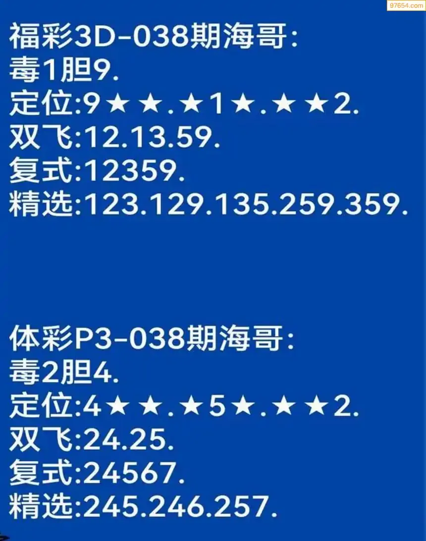 海哥福彩038期3d今日双胆