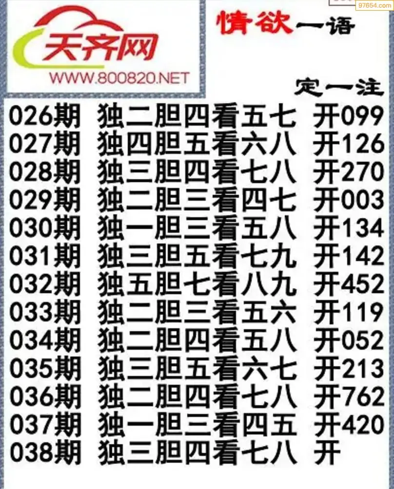 福彩3d左岸清风26年038期一语定一注