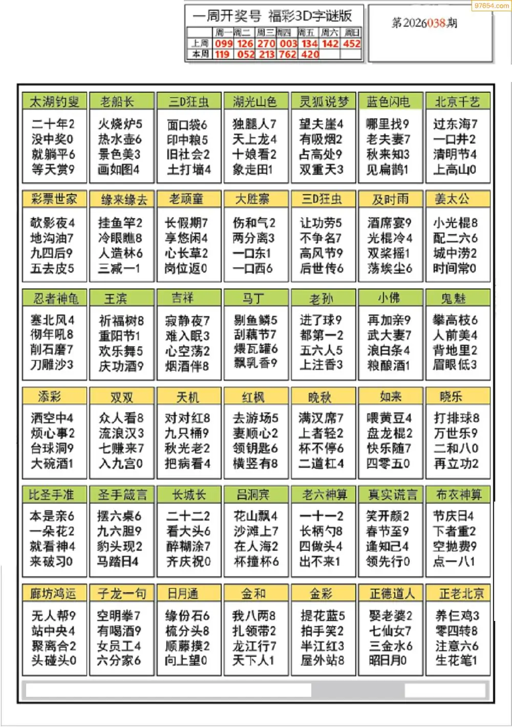 26040期3D天中原创预测字谜报