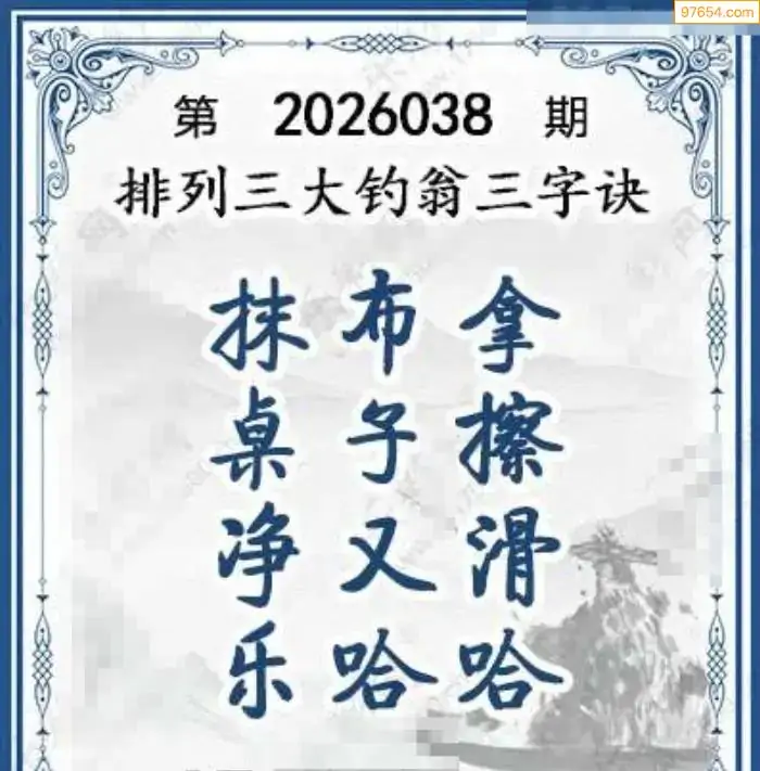 26年体彩p3第038期大钓翁三字诀