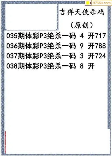 26年038期体彩P三林海音杀码图