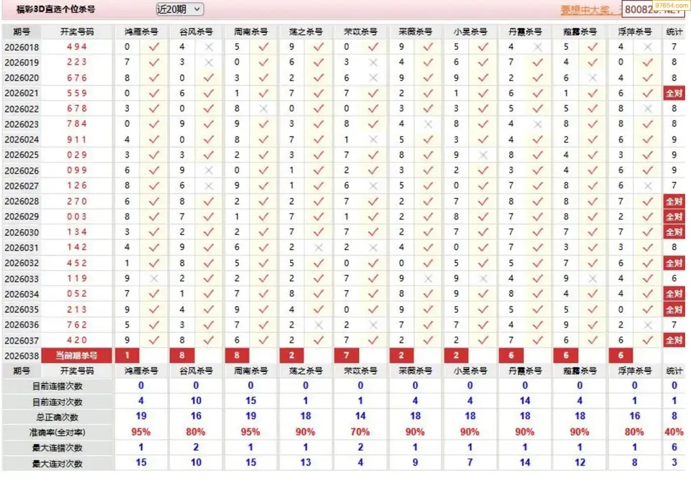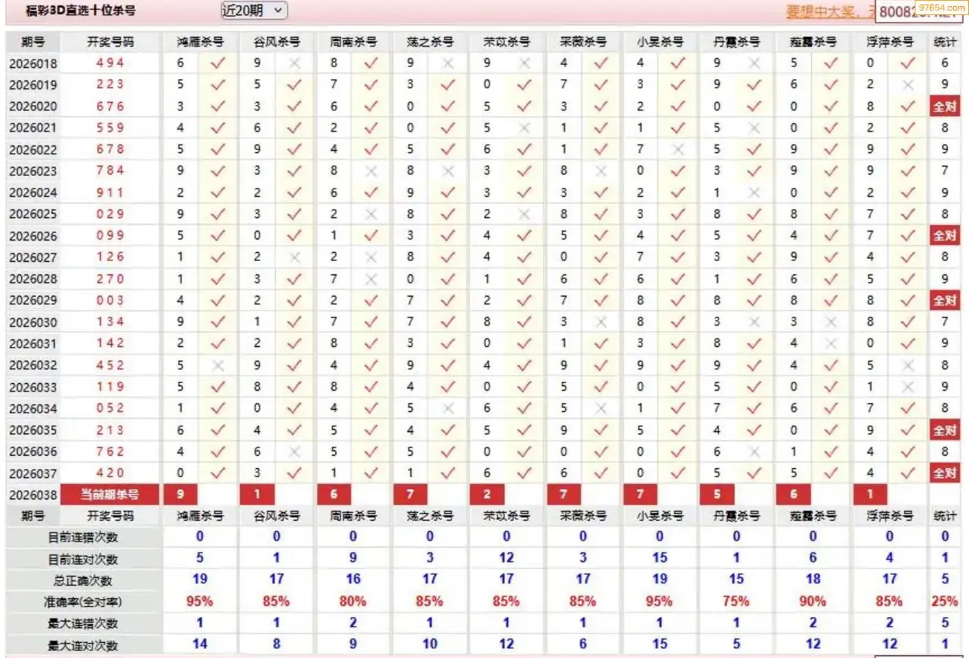 福彩3D盐都杂谈26年038期杀码猜想 5连中