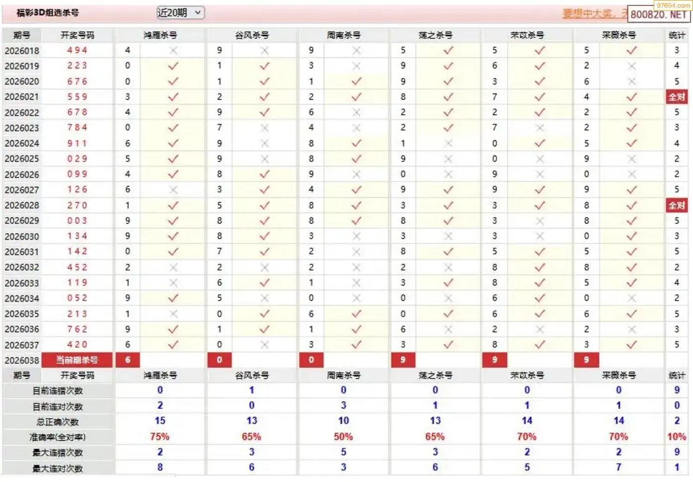 杀号王今晚3d杀一号码038期 6连中