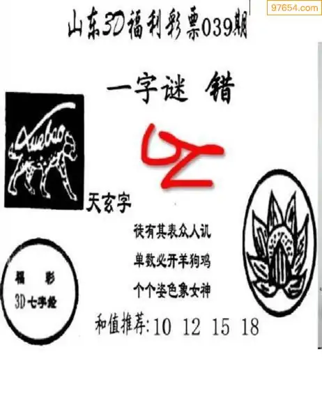 3D26年039期真5188图谜