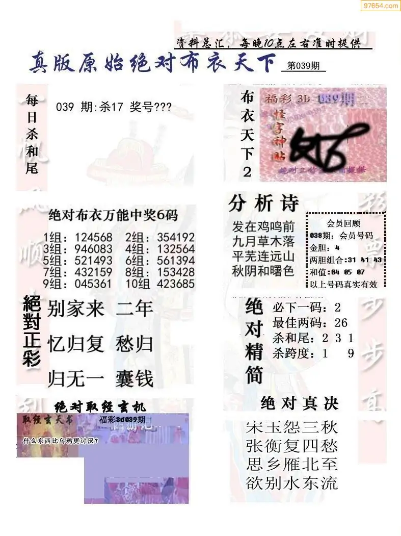 福彩039期3d真精华布衣+布衣早报(转载)