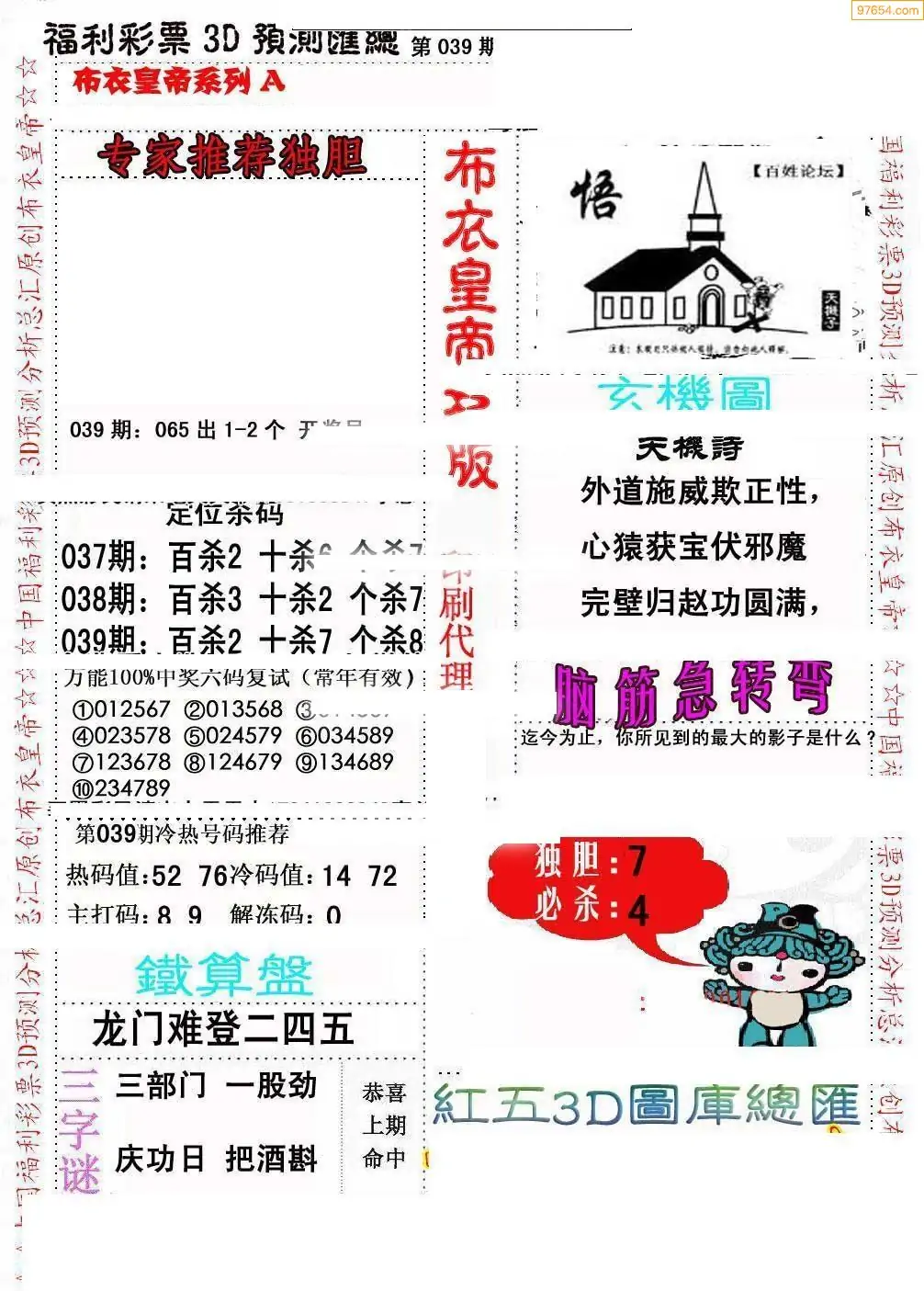 福彩039期3d真精华布衣+布衣早报(转载)