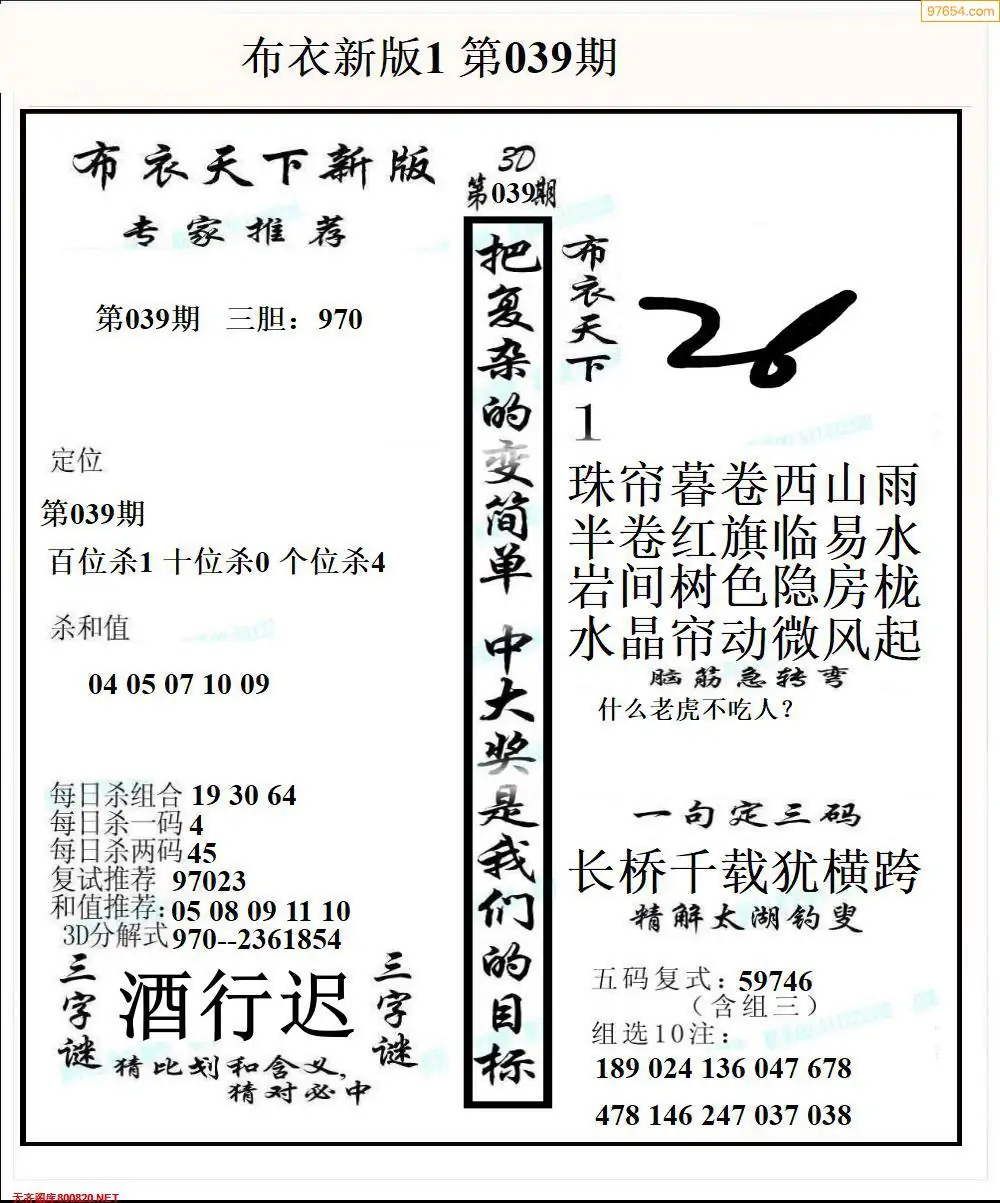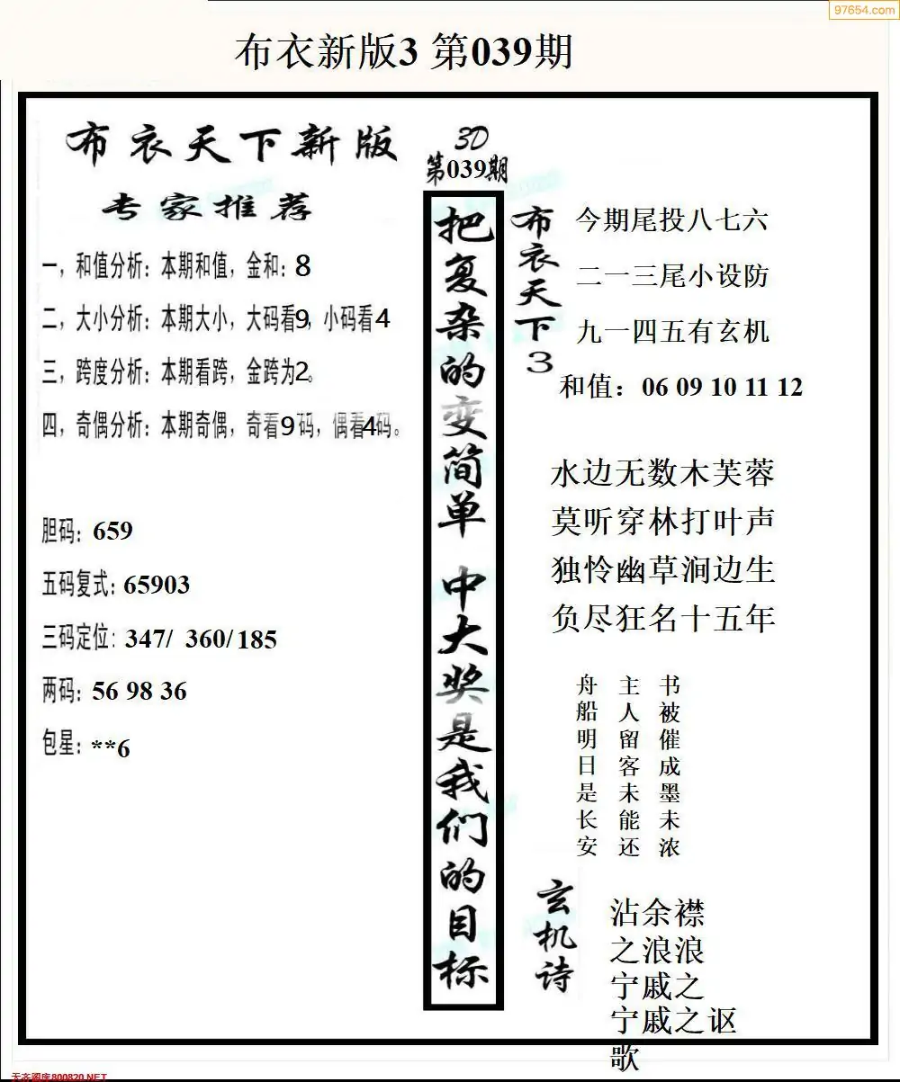 福彩039期3d真精华布衣+布衣早报(转载)