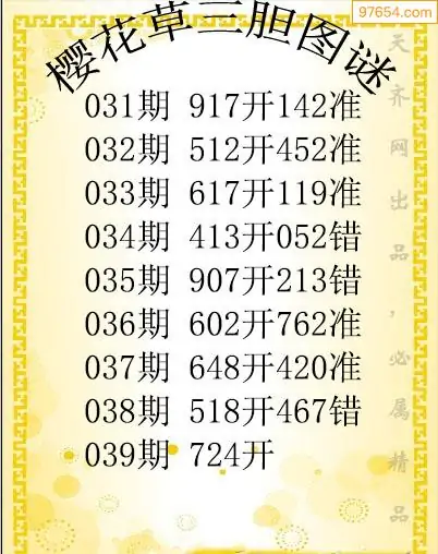 039期97654本站收集胆码出号预测