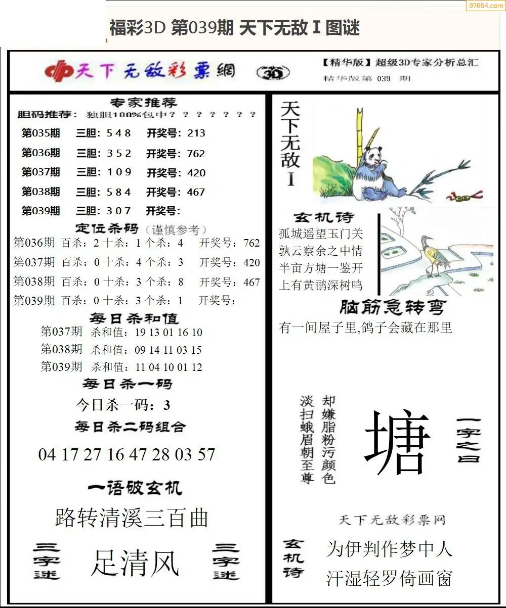(3)2026039期3D预测总汇全图_福彩3d图谜字谜总汇