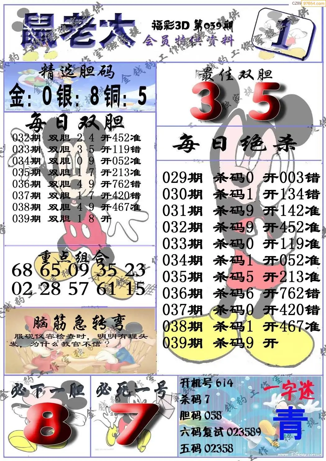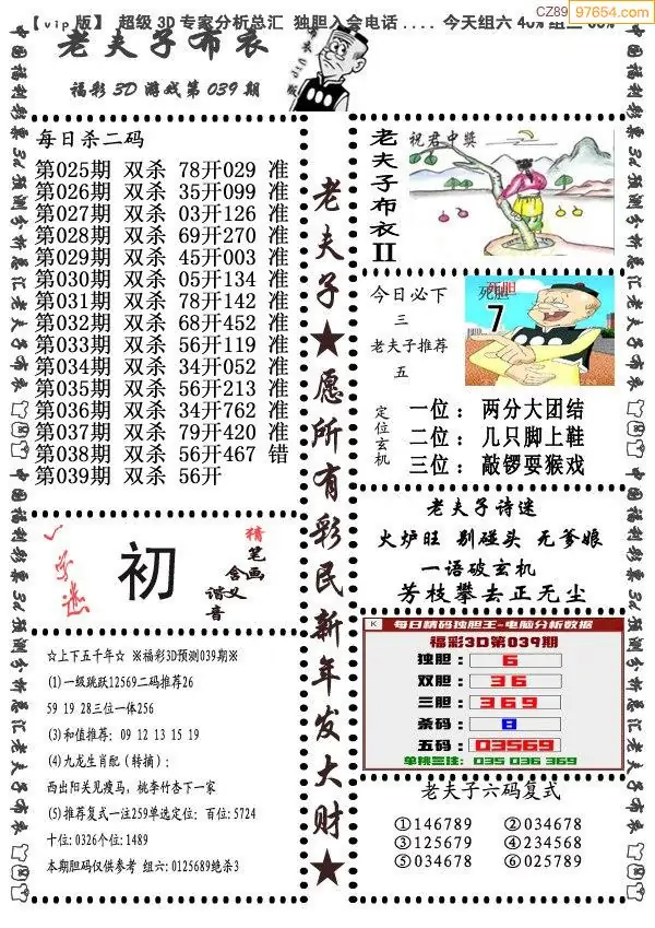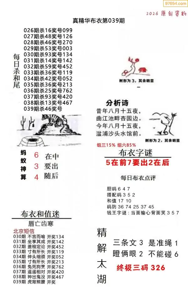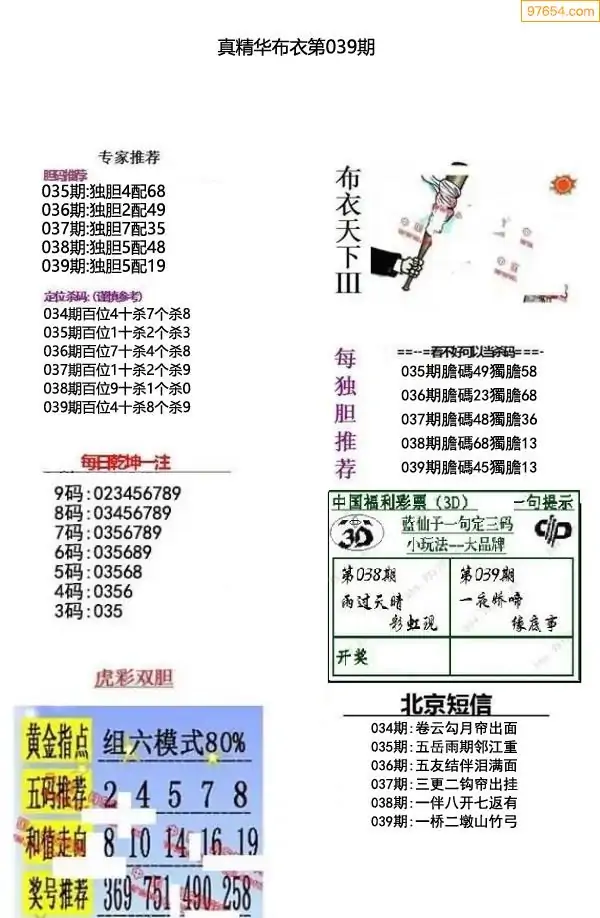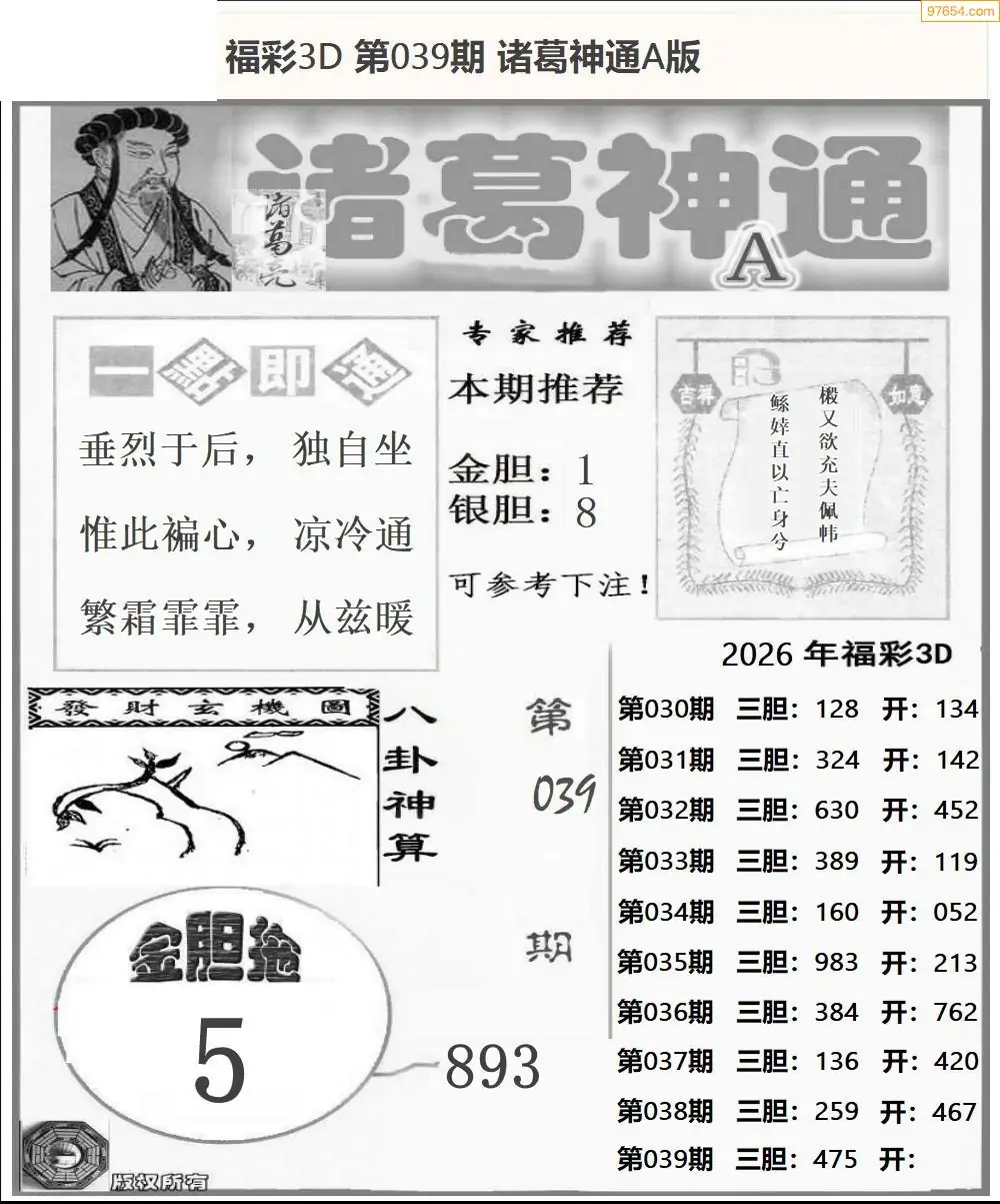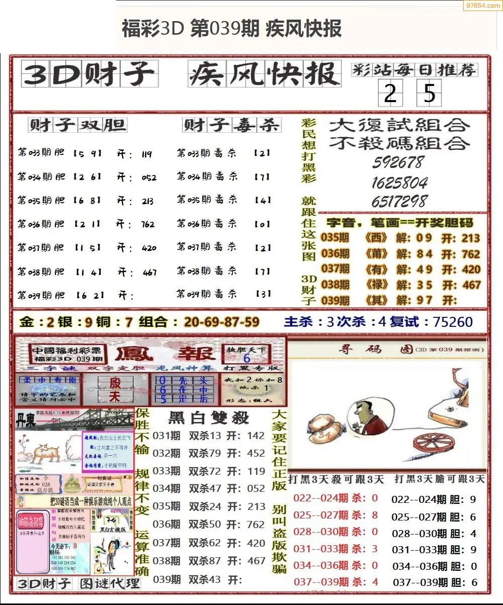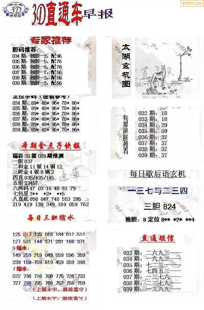 (8)26年039期今日3d各类彩报汇总