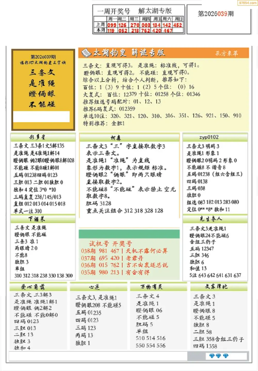 (2)26年039期本期3d图迷汇总_福彩3D图谜总汇图