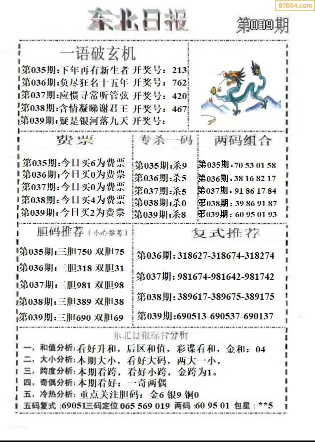 (9)26年039期当期全站杀号定胆图