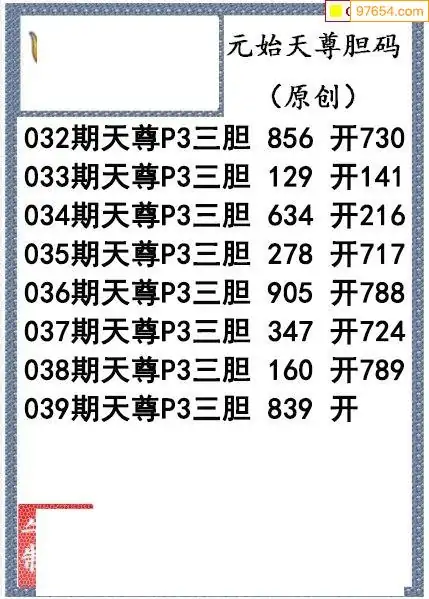 26039期元始天尊排列3胆码图
