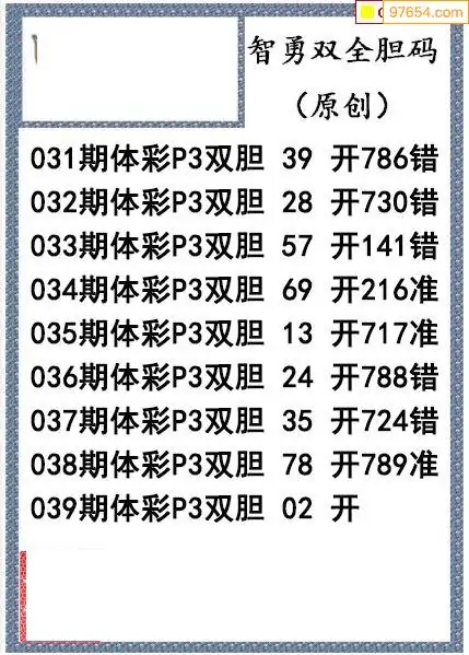 26039期今日P3图迷智勇双全双胆