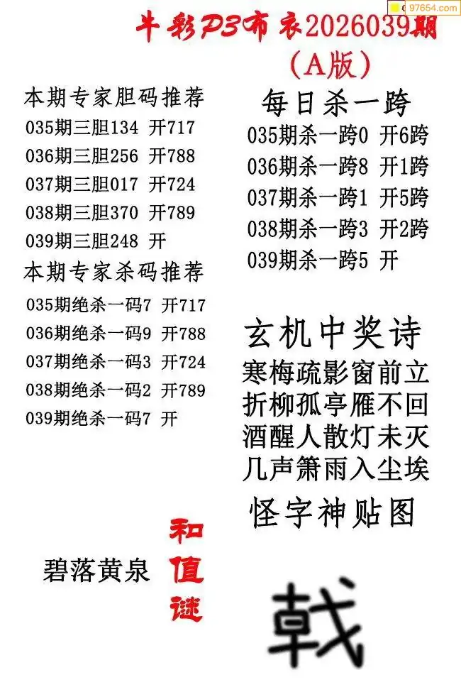 039期清清漫玄系列体彩p3图谜_排三图库p3图库打印