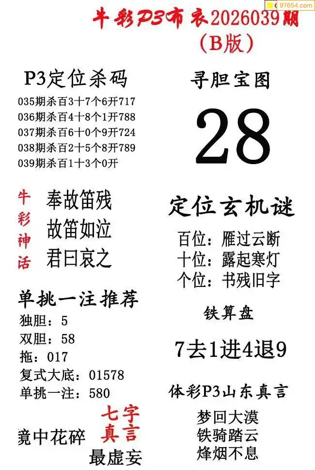 2026年039期北盟天机图+p3仙机图谜 _排三图谜专区